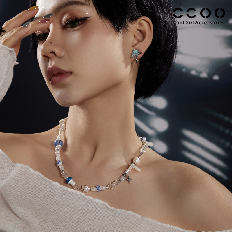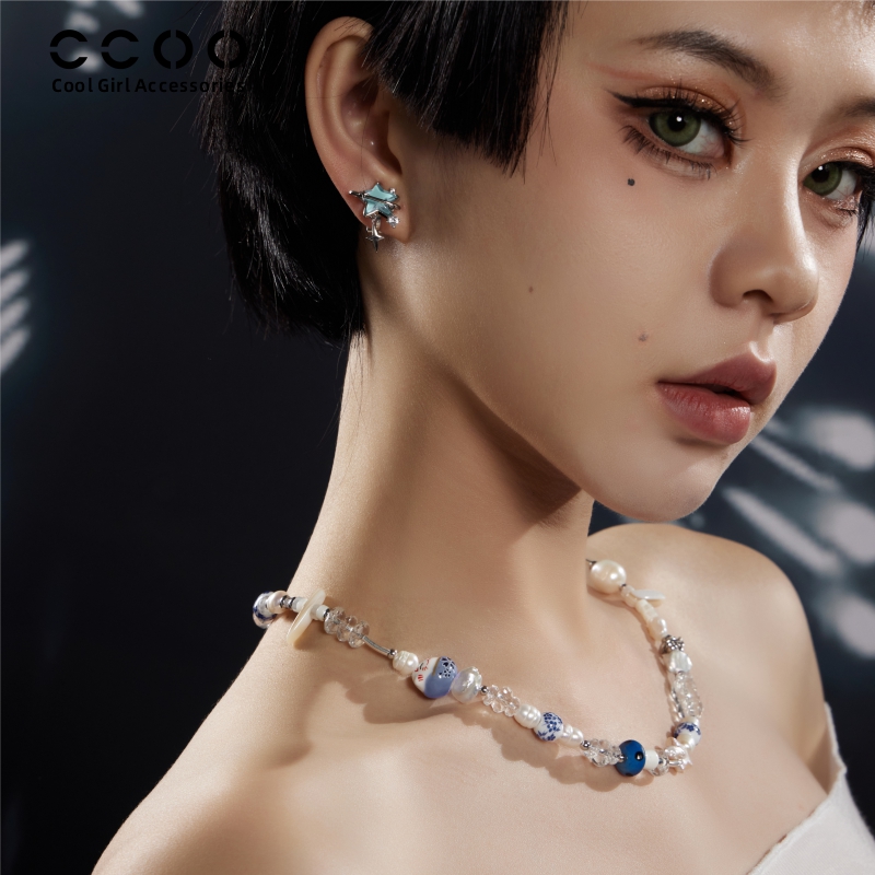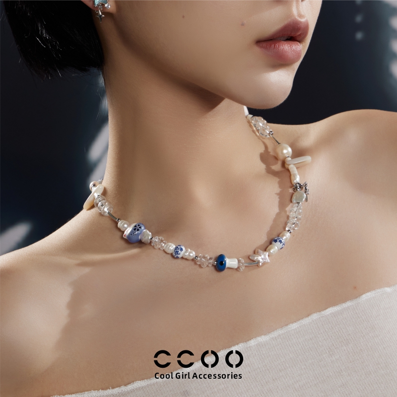 CC&OO高级感法式天然淡水珍珠项链女巴洛克陶瓷混搭度假风锁骨链
