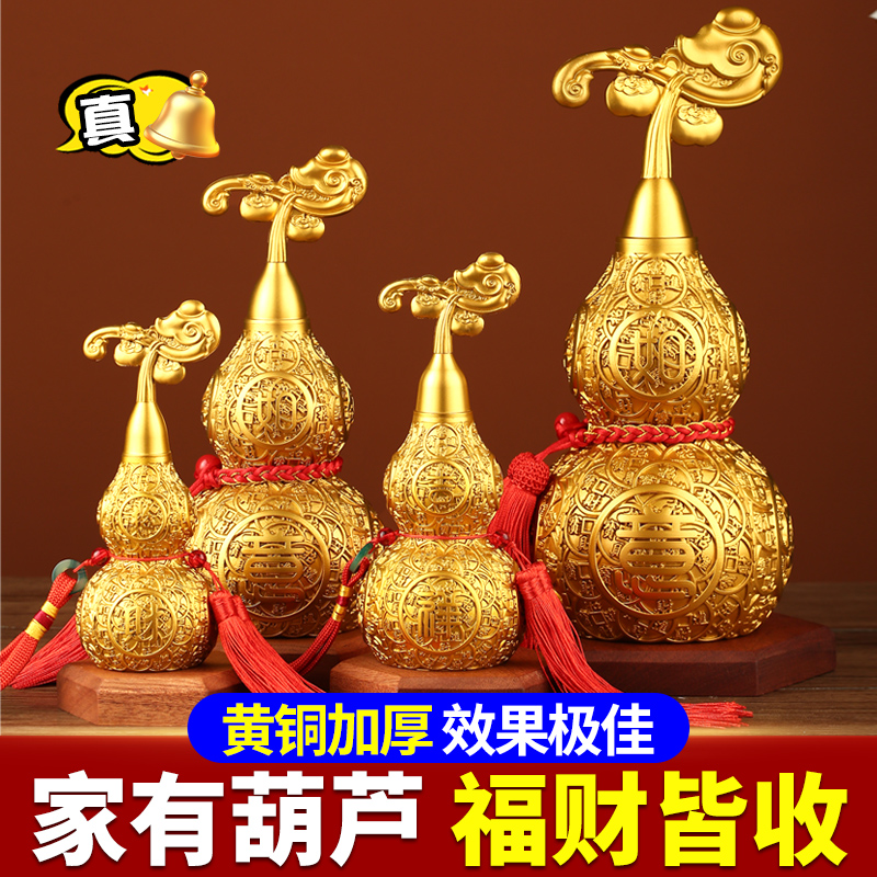 铜葫芦摆件宅挂件招财如意开口的黄铜制铜葫卢五帝钱客厅店铺办公