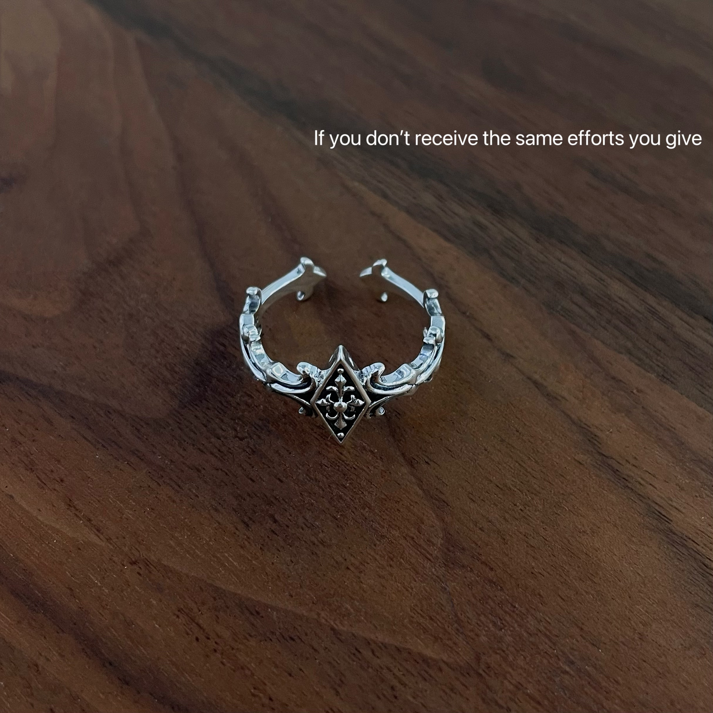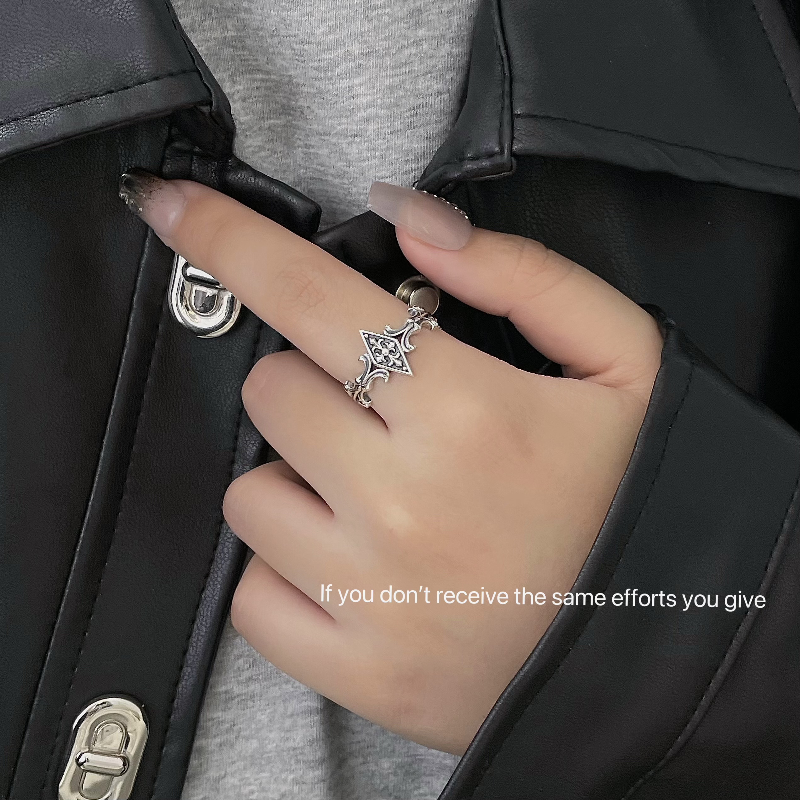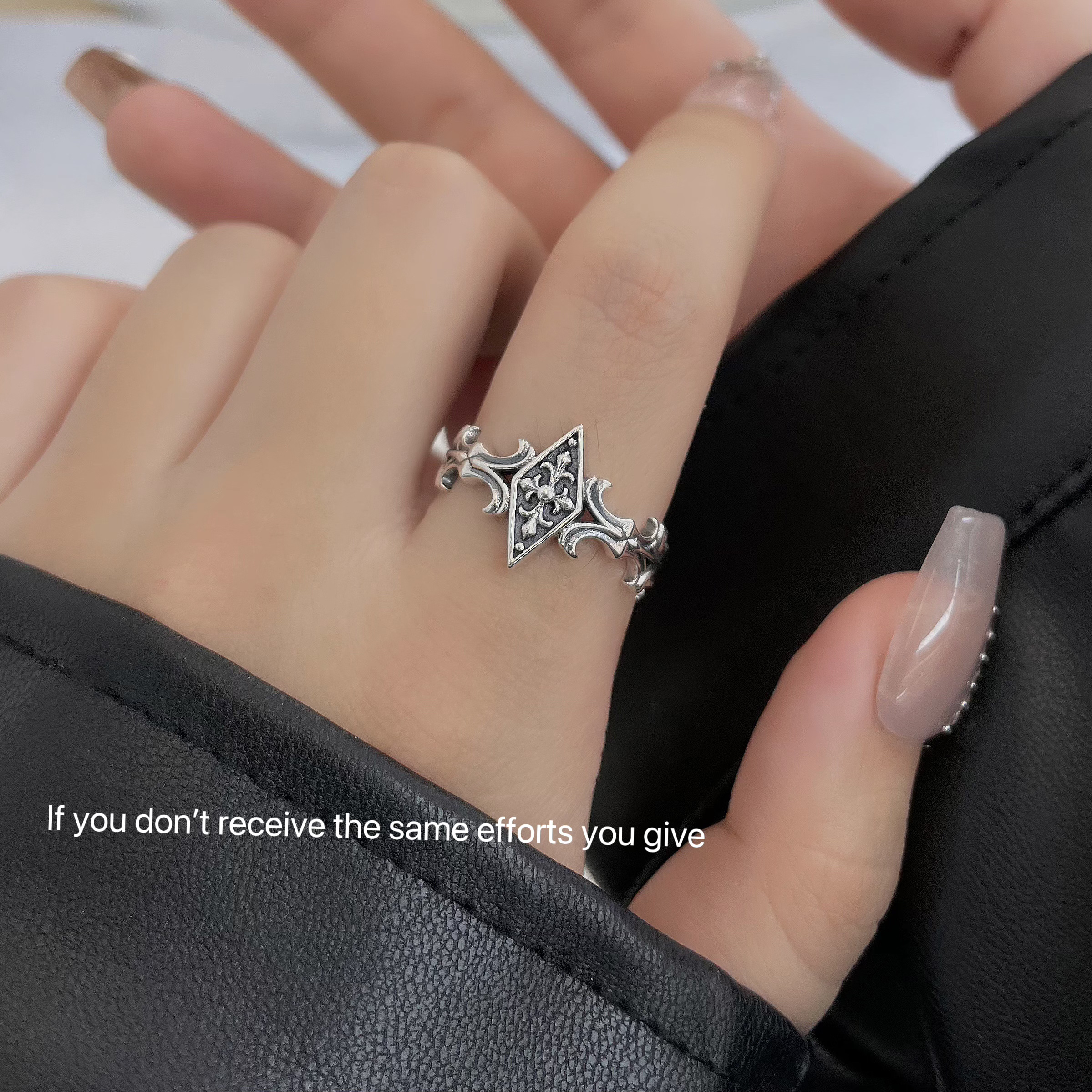 S925纯银鸢尾十字菱形开口戒指复古时尚简约高级小众设计轻奢