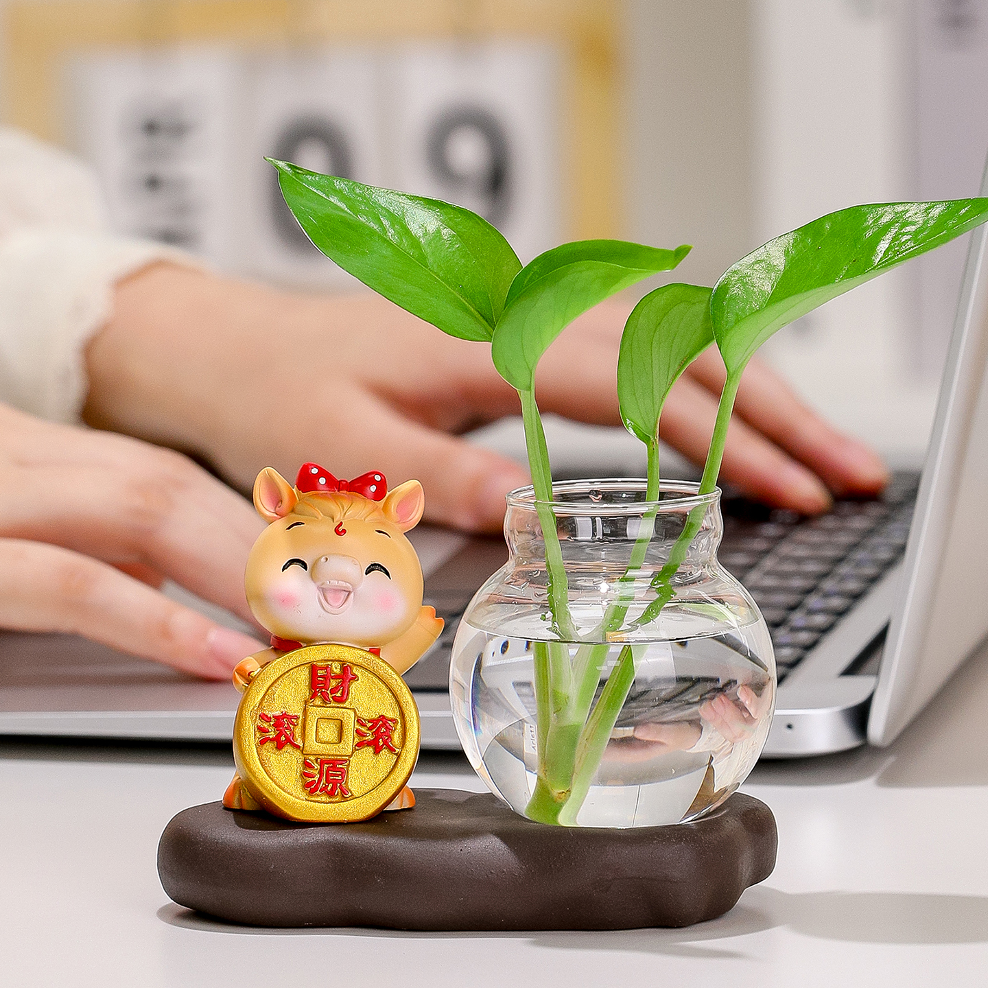 软萌治愈系水培花瓶国潮马摆件客厅插花水养花器装饰办公桌面摆设