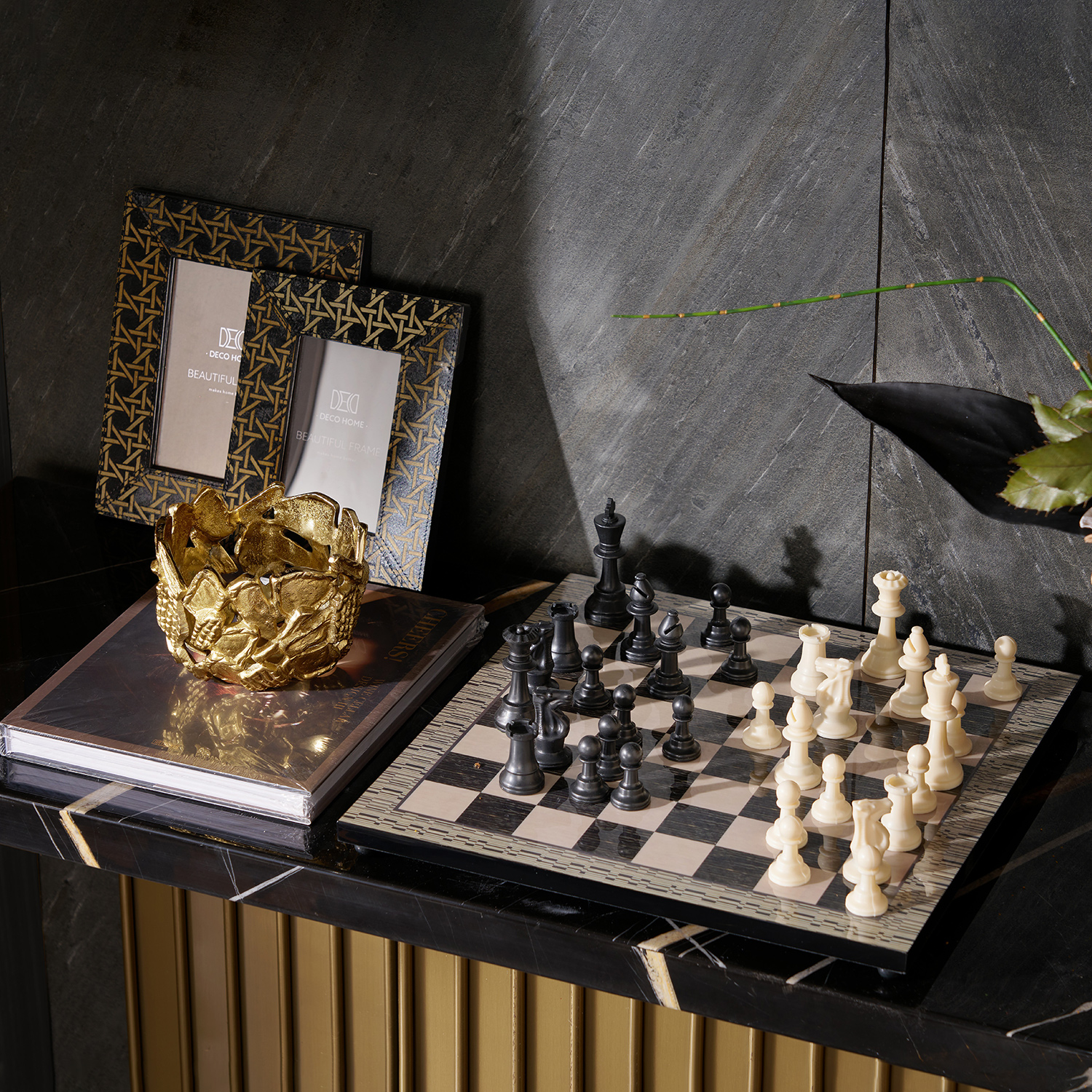 现代轻奢书架装饰摆件套装客厅书房金属工艺品组合装饰品