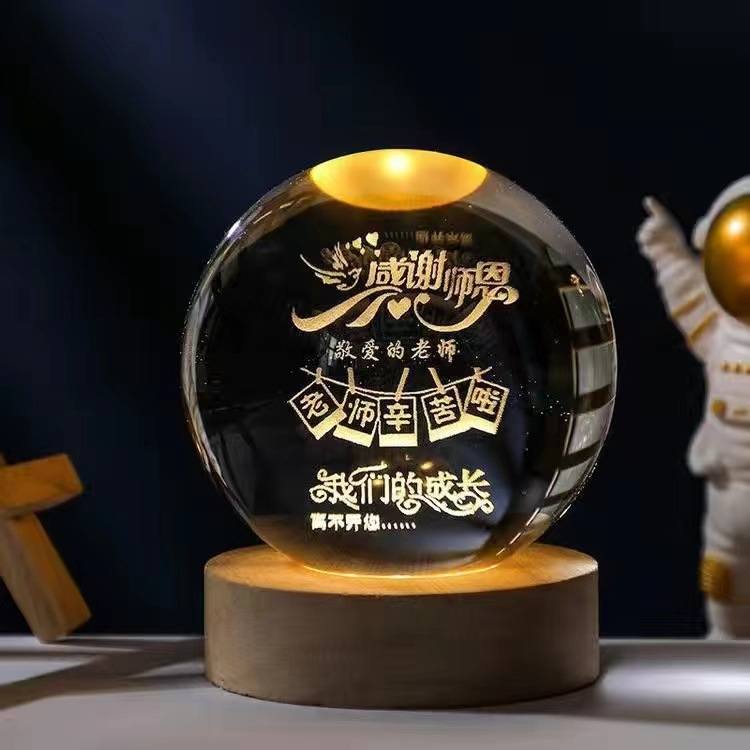 玫瑰花水晶球3d内雕小夜灯发光玻璃球礼品纪念品桌面摆件礼物