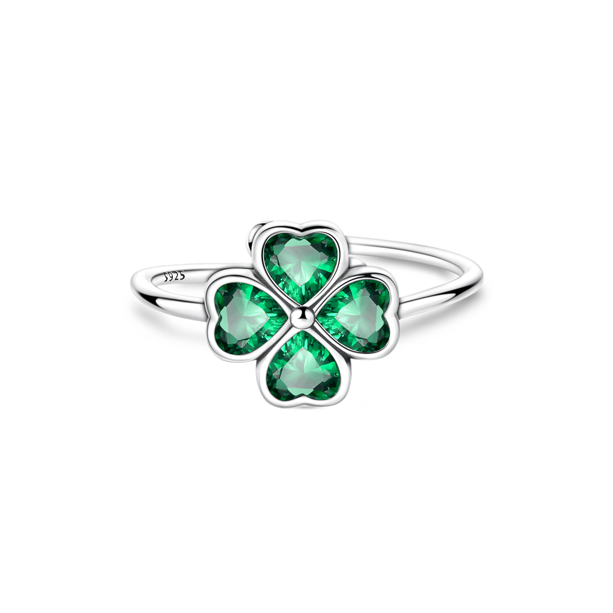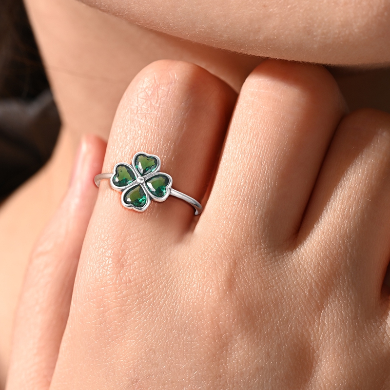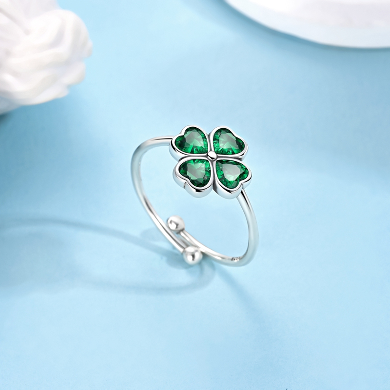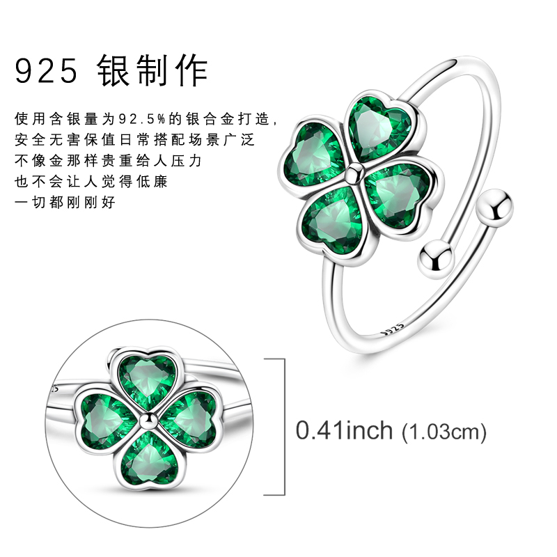 MYBEBOA/美缤宝 纯银S925 四叶草绿色锆石开口可调节女戒指轻奢