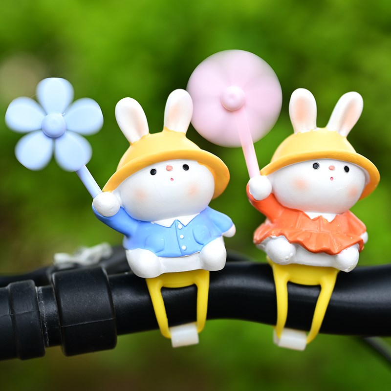 可爱小兔电动车摆件n车载骑行风车电瓶自行车公仔摩托车装饰小配