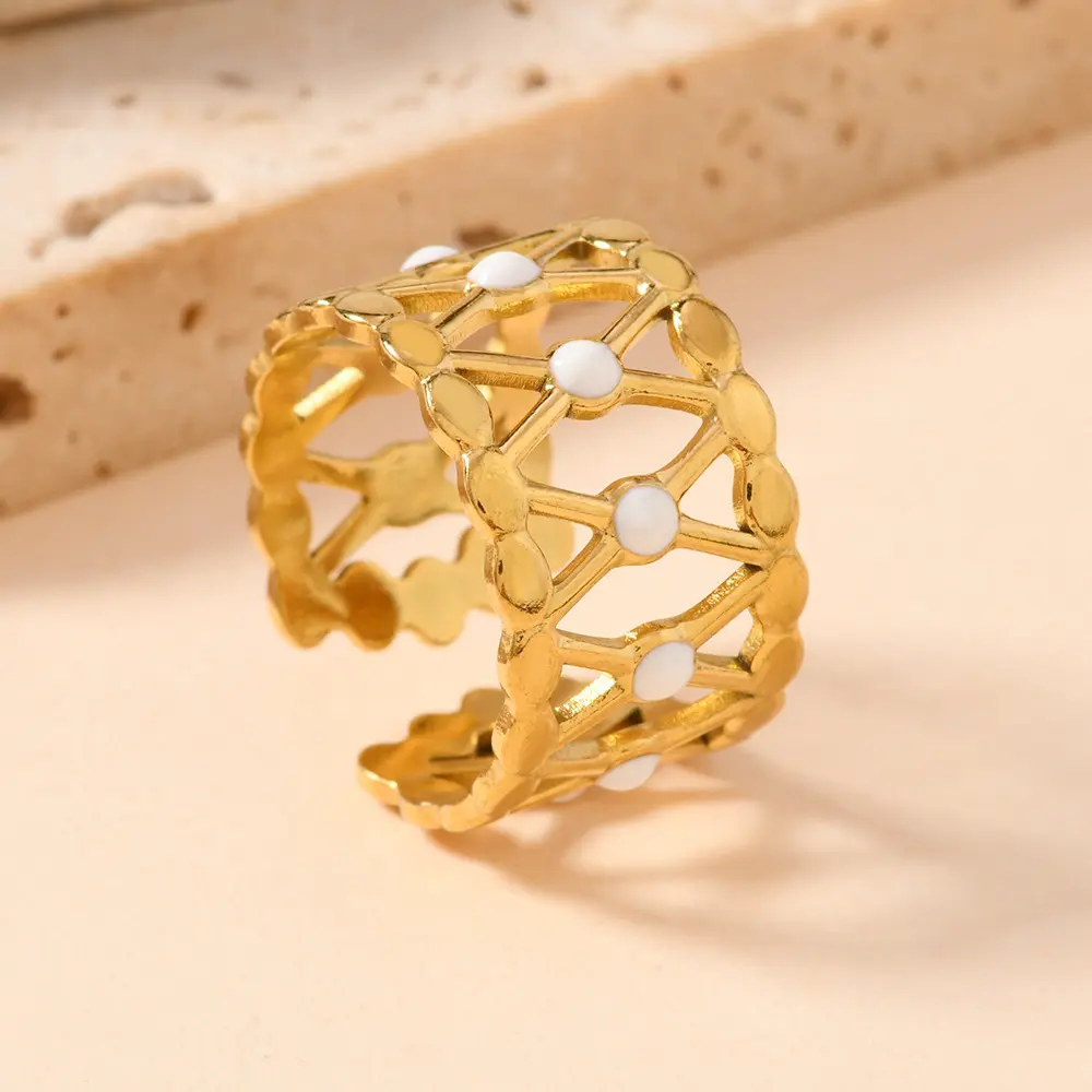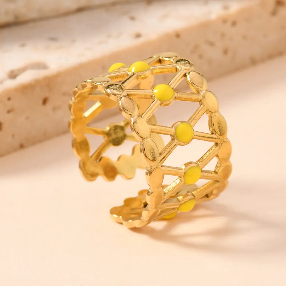 欧美时尚不锈钢戒指 小众高级感镂空滴彩色油开口戒指女士饰品