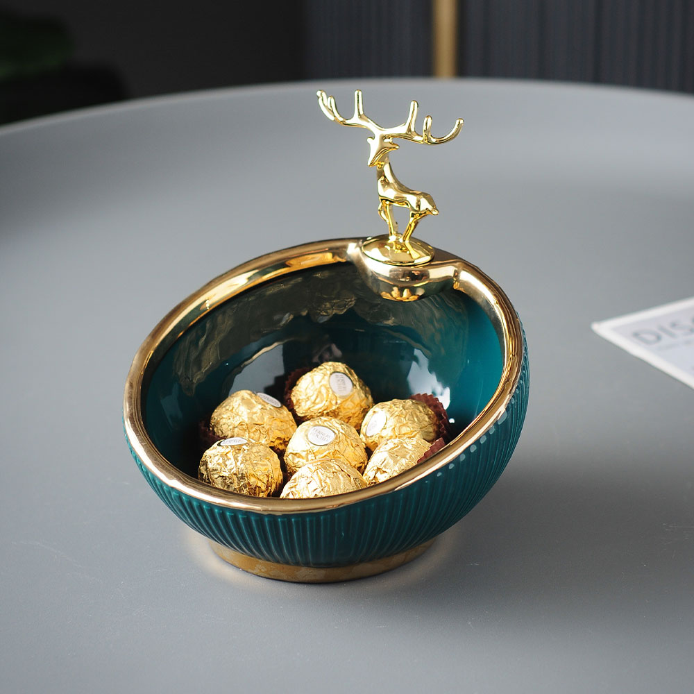 现代简约玄关鞋柜入户门钥匙金鹿收纳陶瓷摆件创意客厅家居装饰品