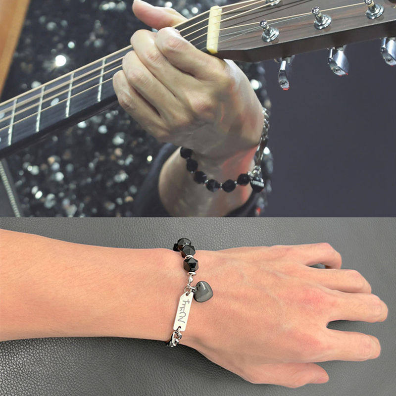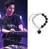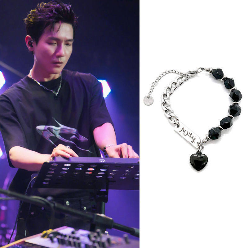 陈楚生同款黑色爱心竖牌手链环圈串珠钛钢拼接个性潮流酷0713男团