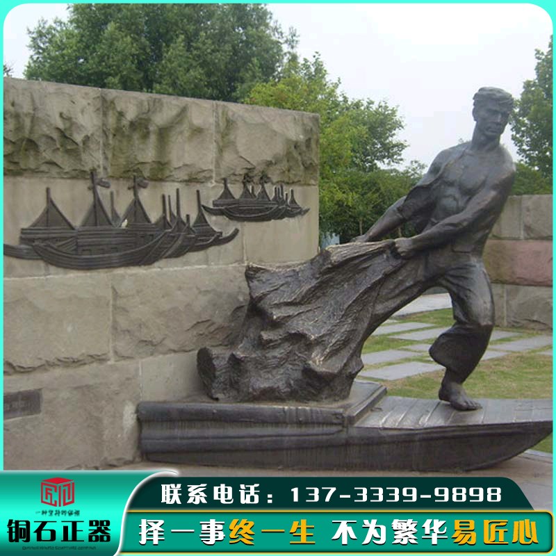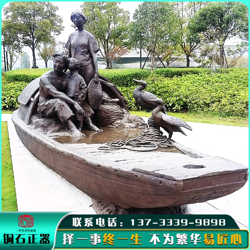 玻璃钢仿铜人物雕塑渔民渔夫划船定制做铸铜雕像园林景观落地摆件
