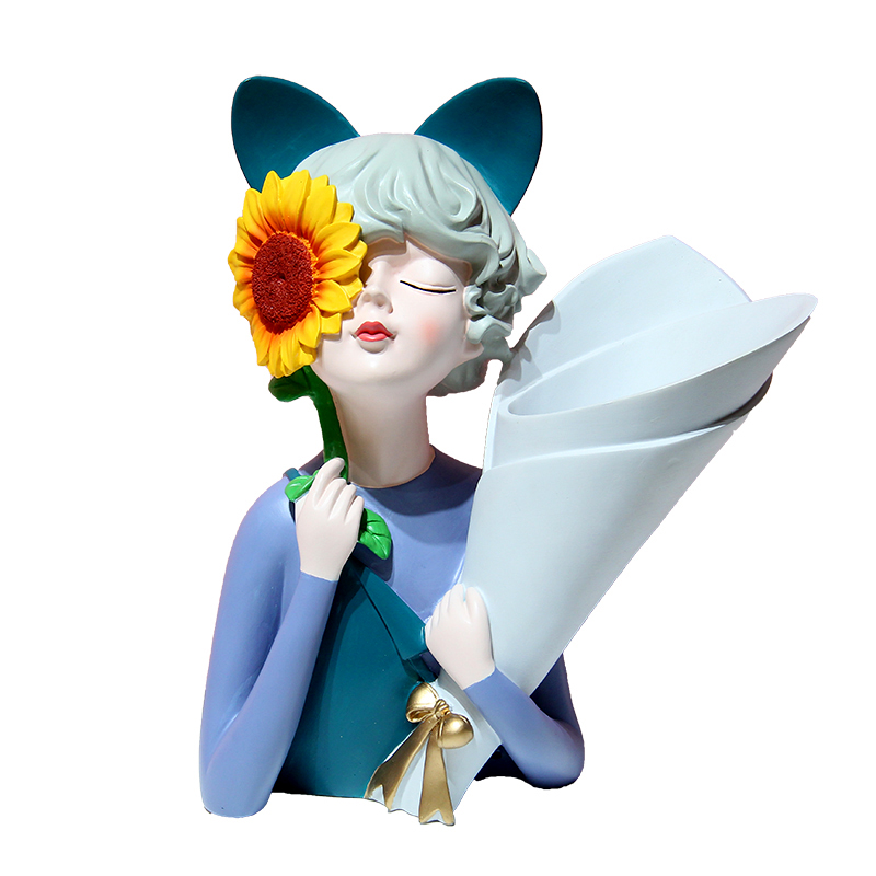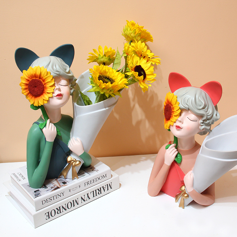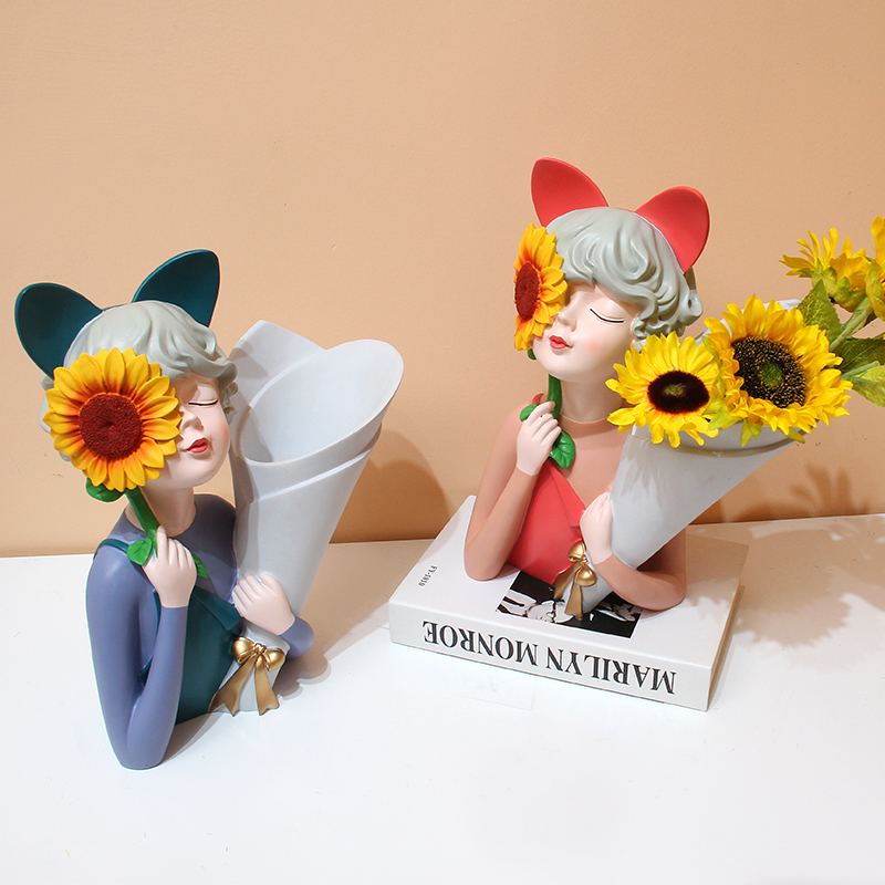 向日葵抱花女孩干花花瓶摆件捧花少女玄关客厅电视柜W插花装饰礼