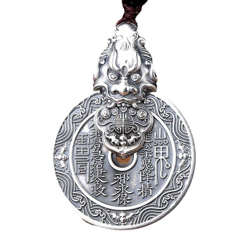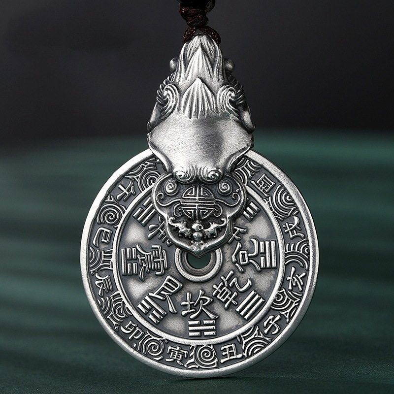 925纯银貔貅山鬼花钱平安扣吊坠进宝貔貅吊坠挂绳男乾坤八卦项链