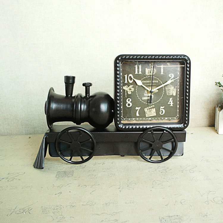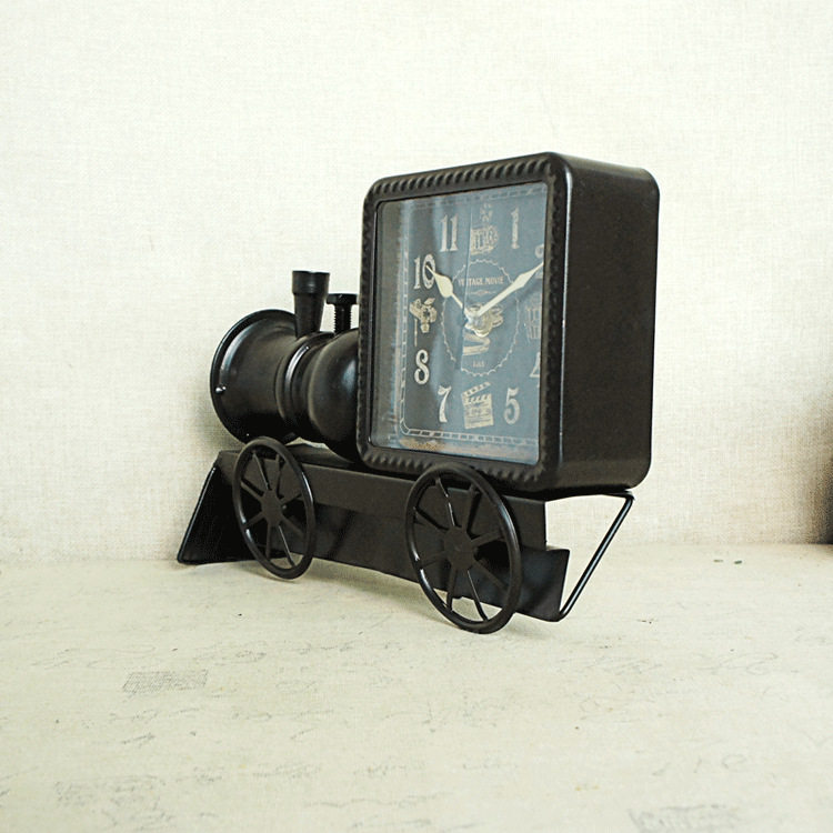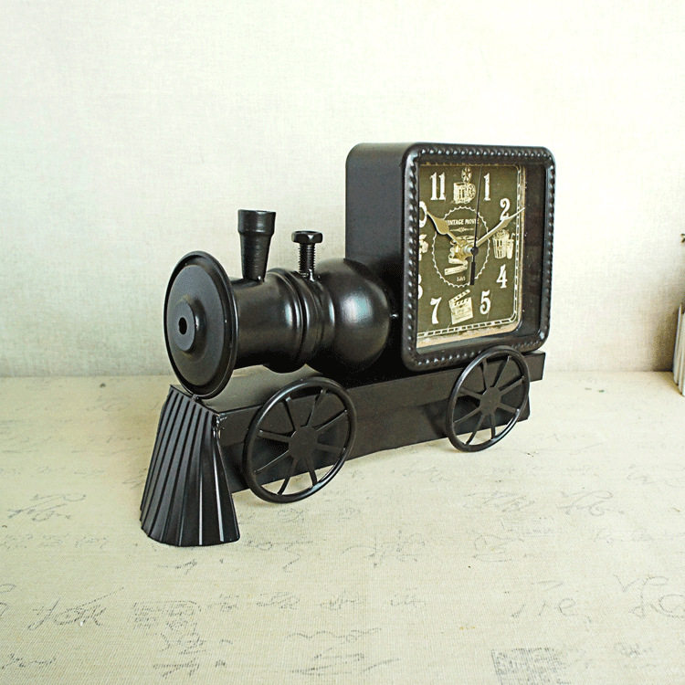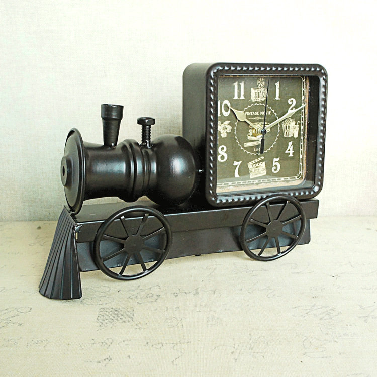 复古火车头造型桌面装饰摆件铁艺时钟创意家居装饰品