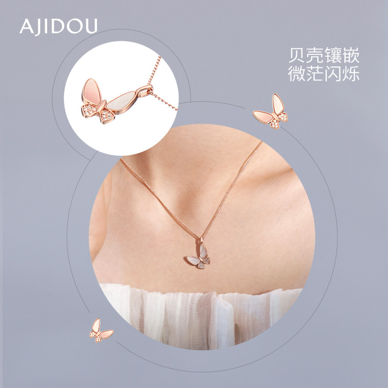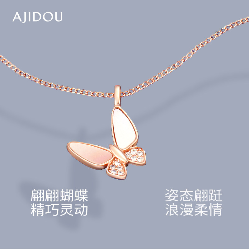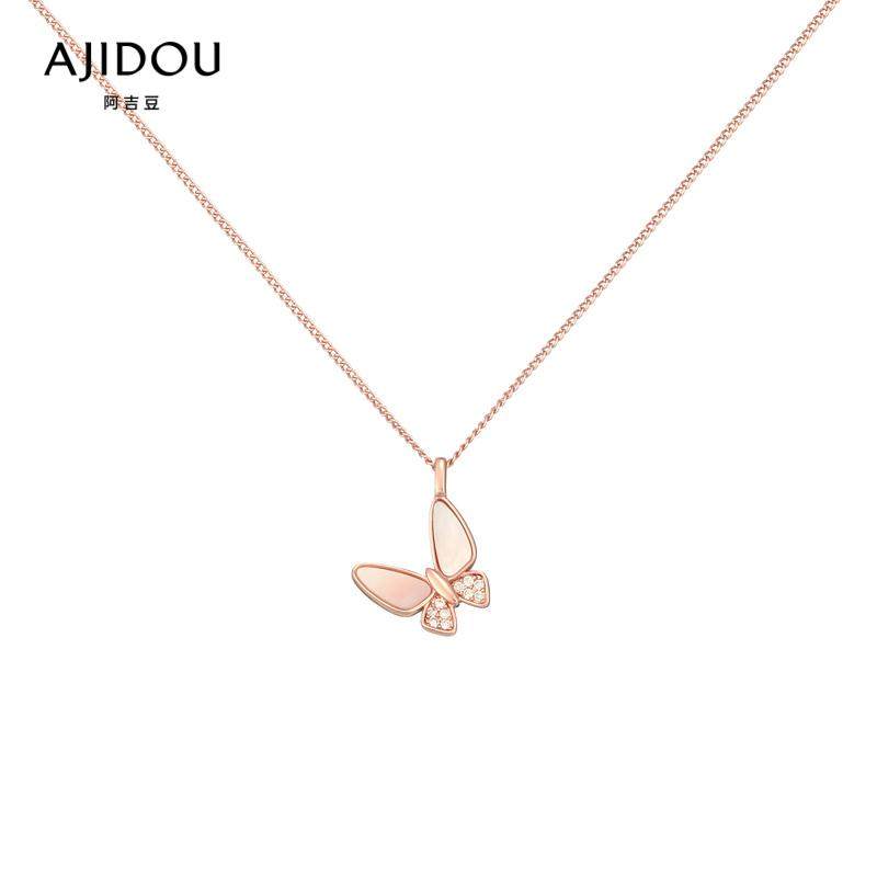 AJIDOU阿吉豆项链女款贝壳蝴蝶项链小众时尚吊坠玫瑰金锁骨链颈链