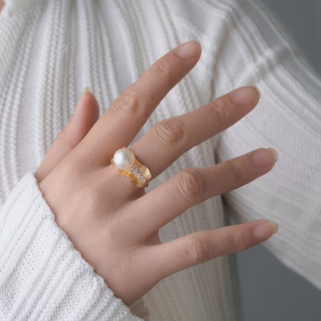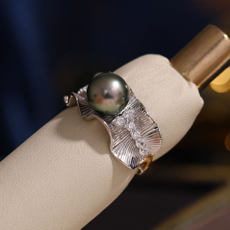 DIY珍珠配件S925纯银小众复古裙摆戒指托指环调节戒托空托配6-8mm
