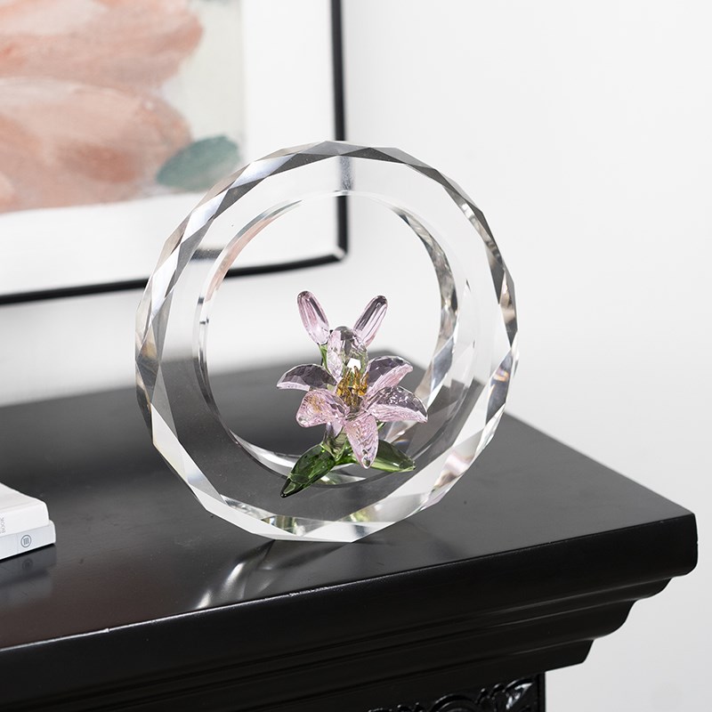 现代轻奢粉色水晶l花摆件创意客厅酒柜书房办公室家居装饰品礼品