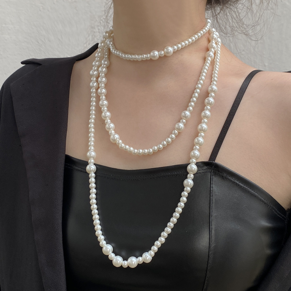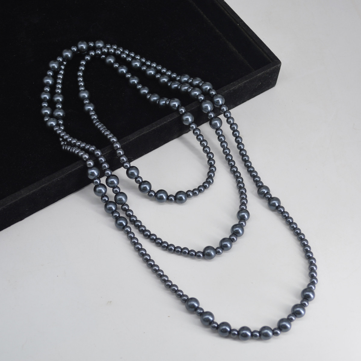 施家真多麻灰色长款白珍珠毛衣链女高级感双层多层叠戴高档项链潮
