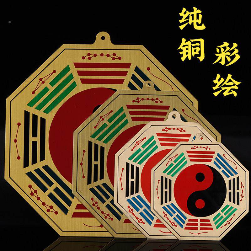 纯铜太极LSV八卦绘镜平面用镜挂件彩铜卦虎头镜凸镜凹镜家门口八