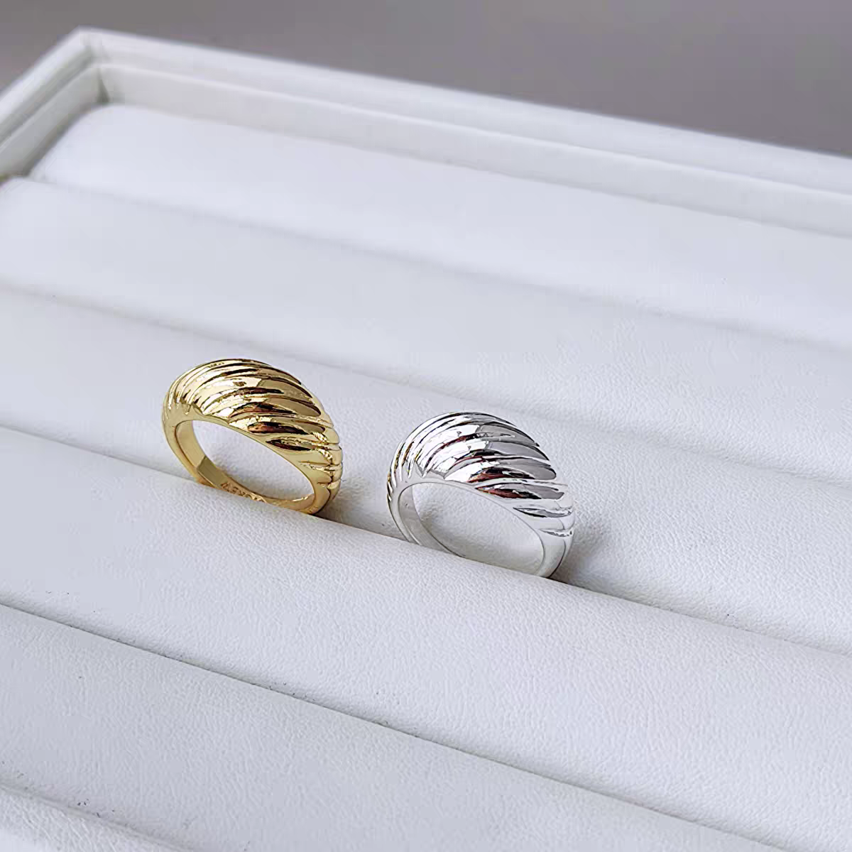 欧美出口余量小众j.cn品牌logo镀真金镶钻日常百搭螺纹气质戒指女