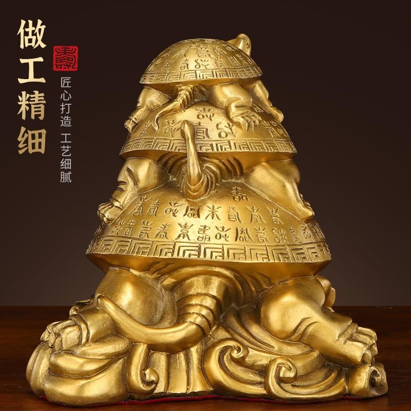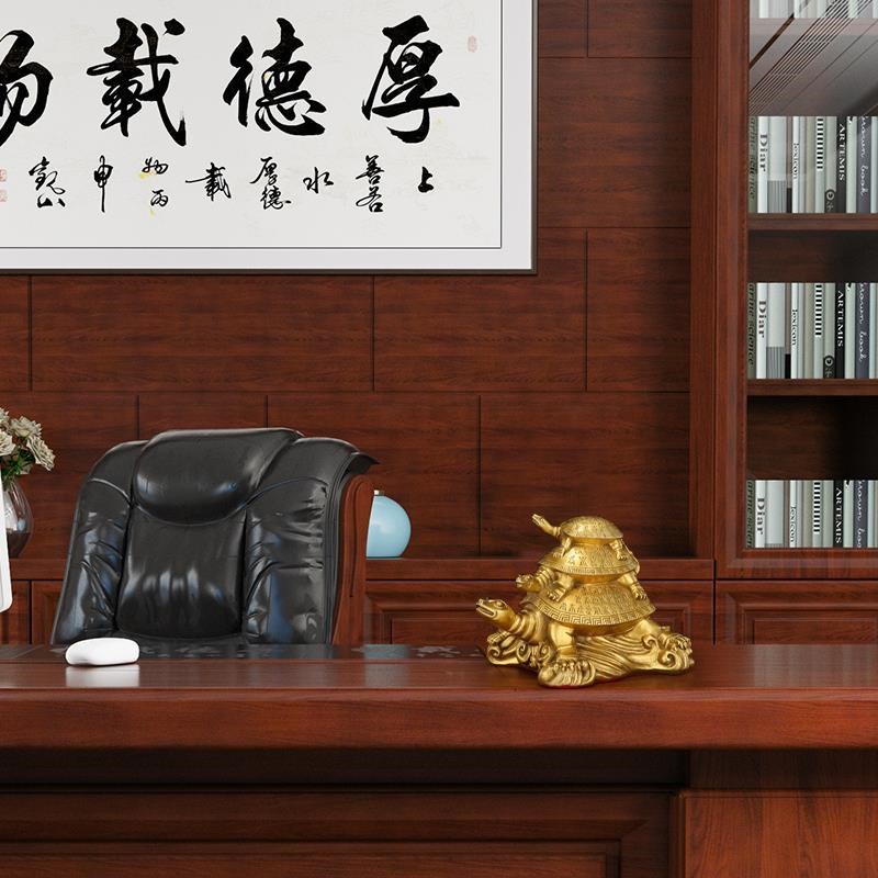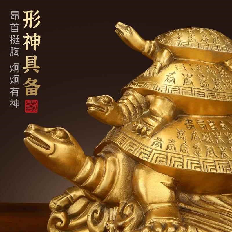 纯黄铜三代龟h摆件子母龙龟办公室家居店铺开业装饰复古铜龟工艺