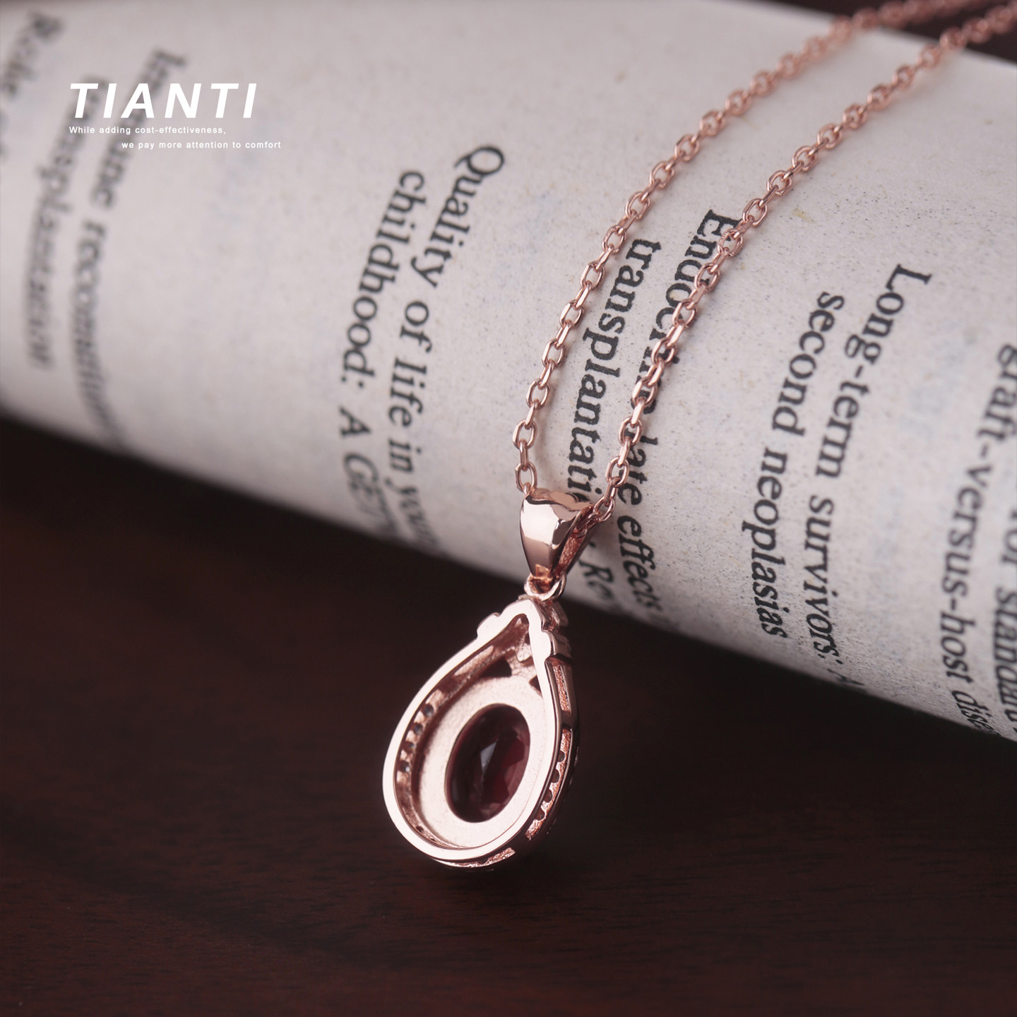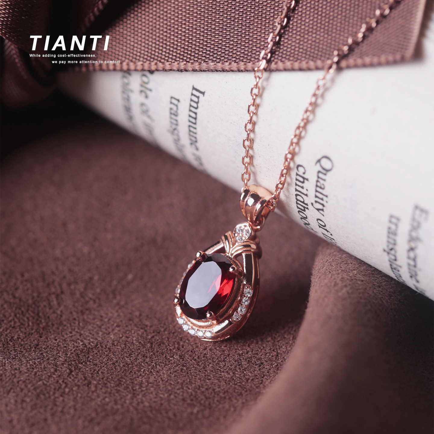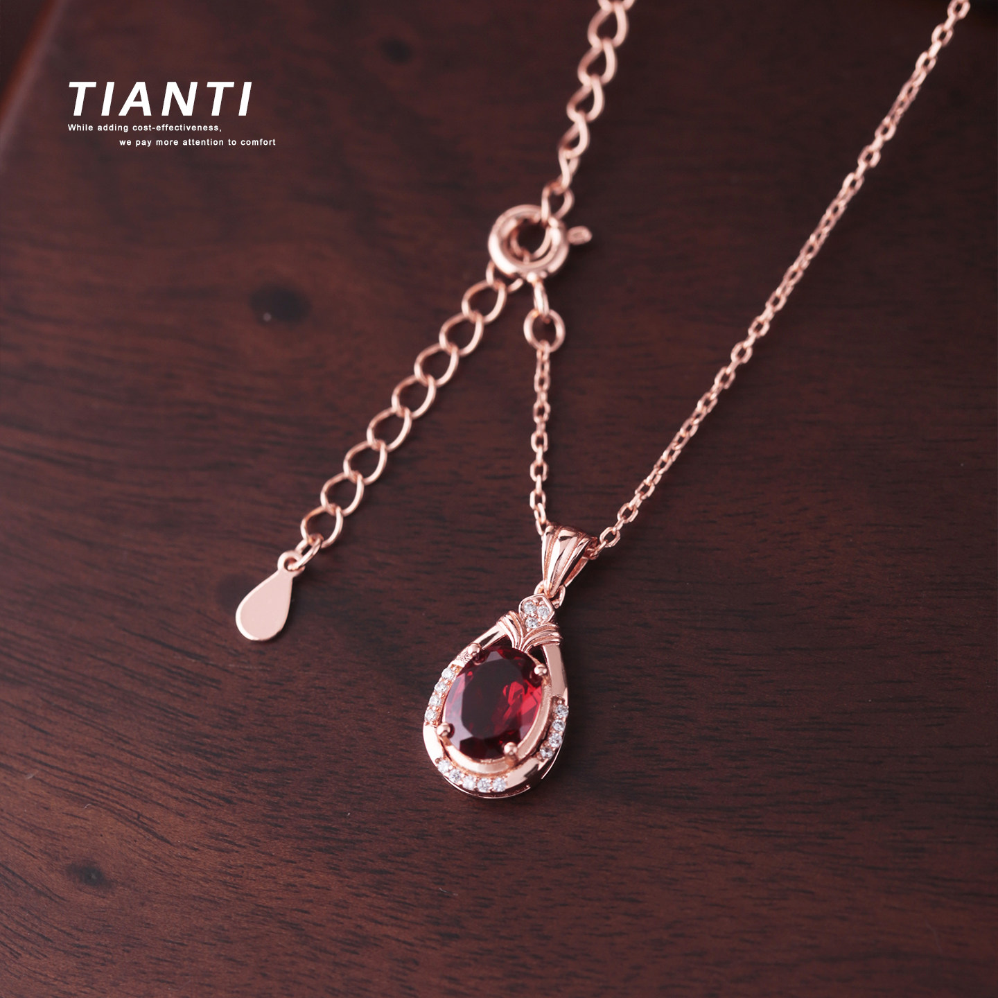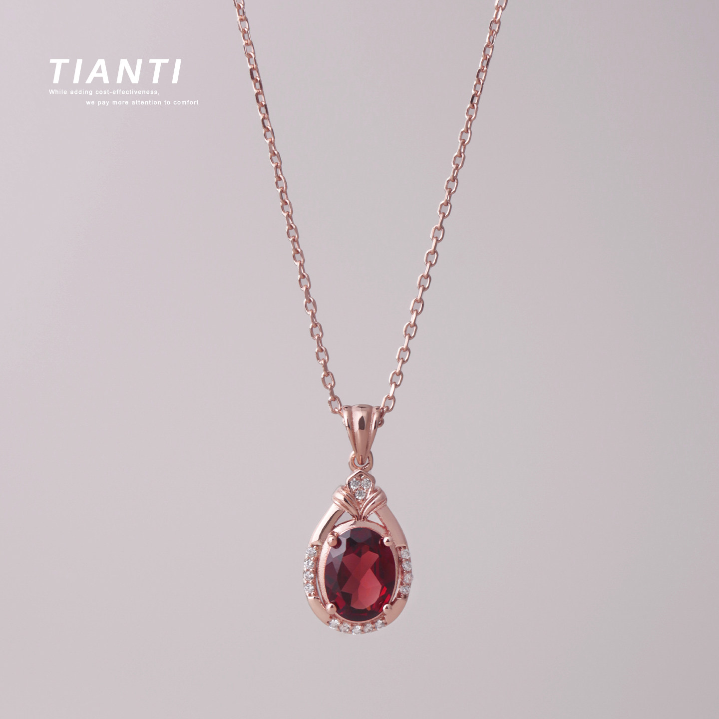 天然鸽血红石榴石宝石吊坠轻奢小众锁骨项链S925纯银镀18K玫瑰金