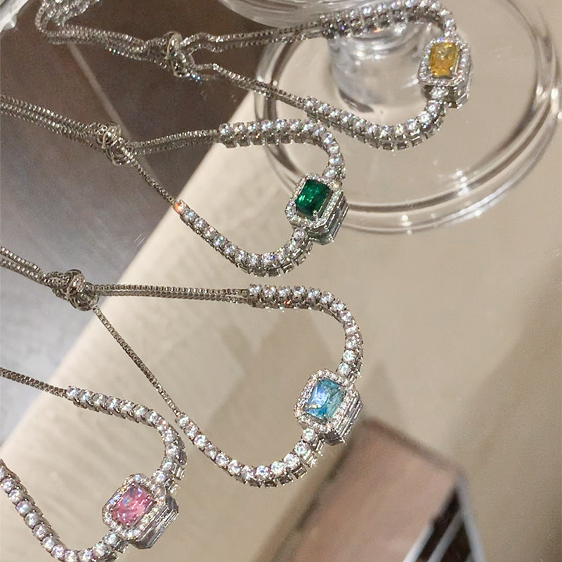 锆石方糖水晶手链女生闺蜜手链轻奢小众精致手串多巴胺手绳手饰品