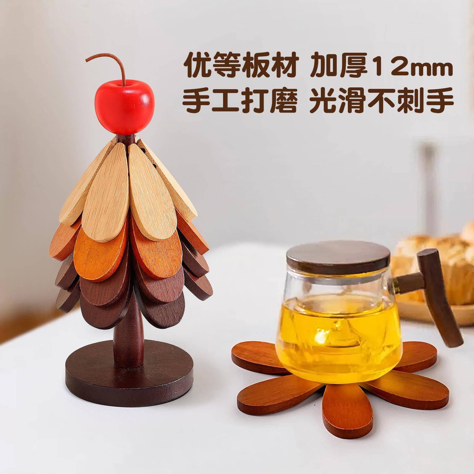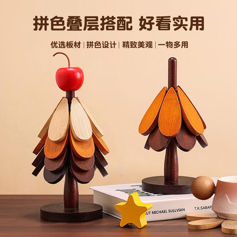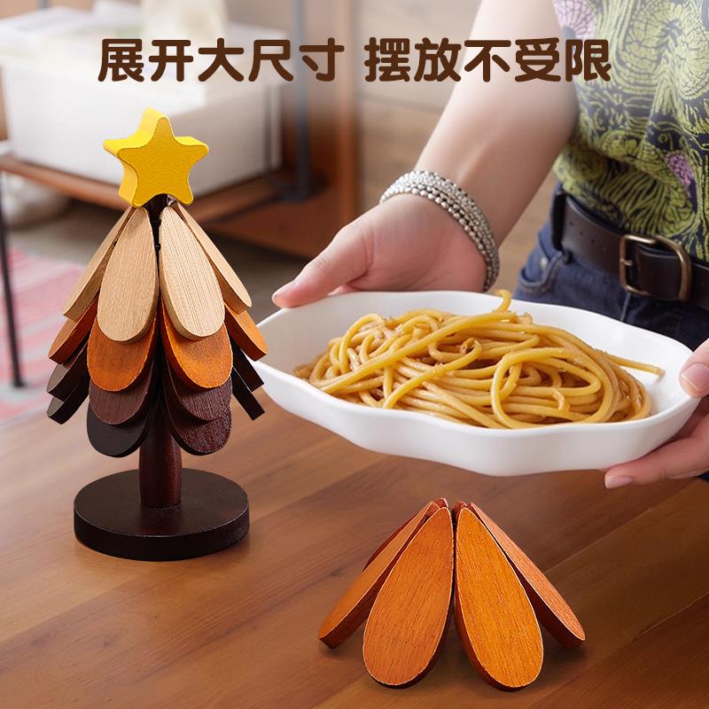 耶诞树隔热垫餐桌高级感摆件创意一棵树实木防烫锅垫折叠杯垫碗垫