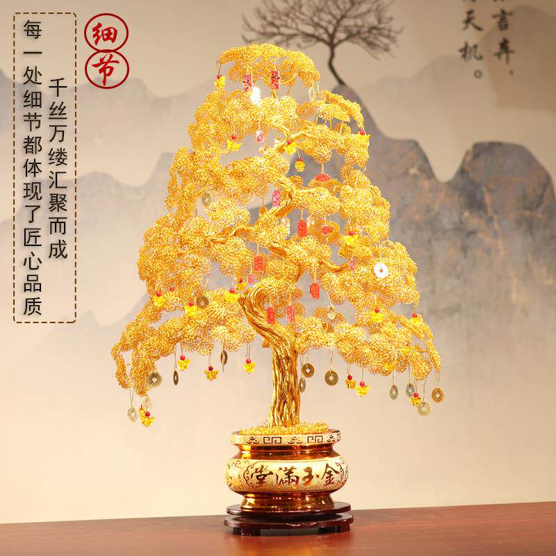 发财树摆件办公室装饰店铺开业招财礼物轻奢高档工艺品金色摇钱树