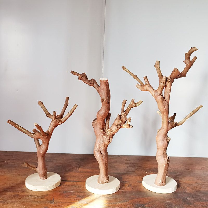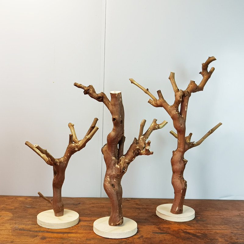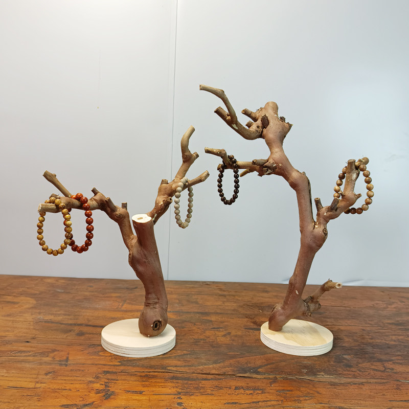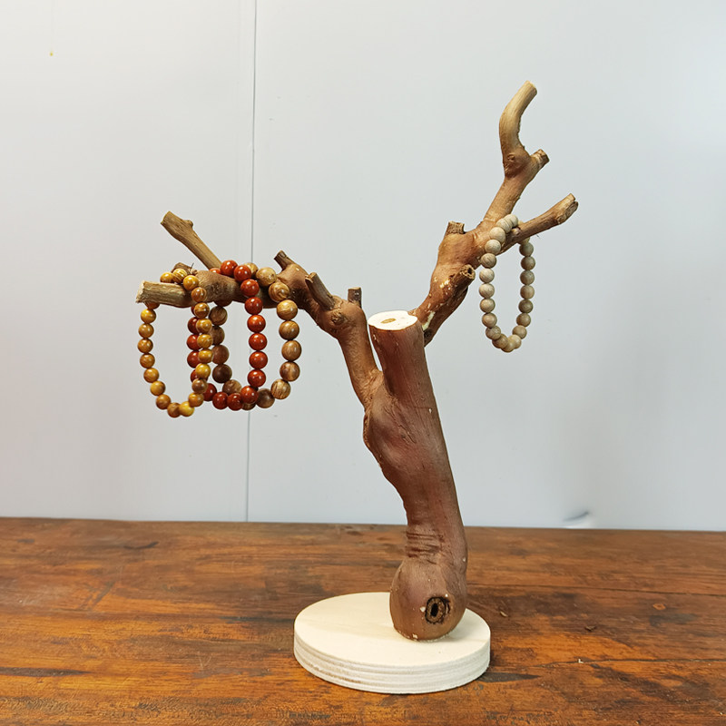 原木树杈带底托摆件 书架客厅茶几装饰 手工天然把玩手串实木支架