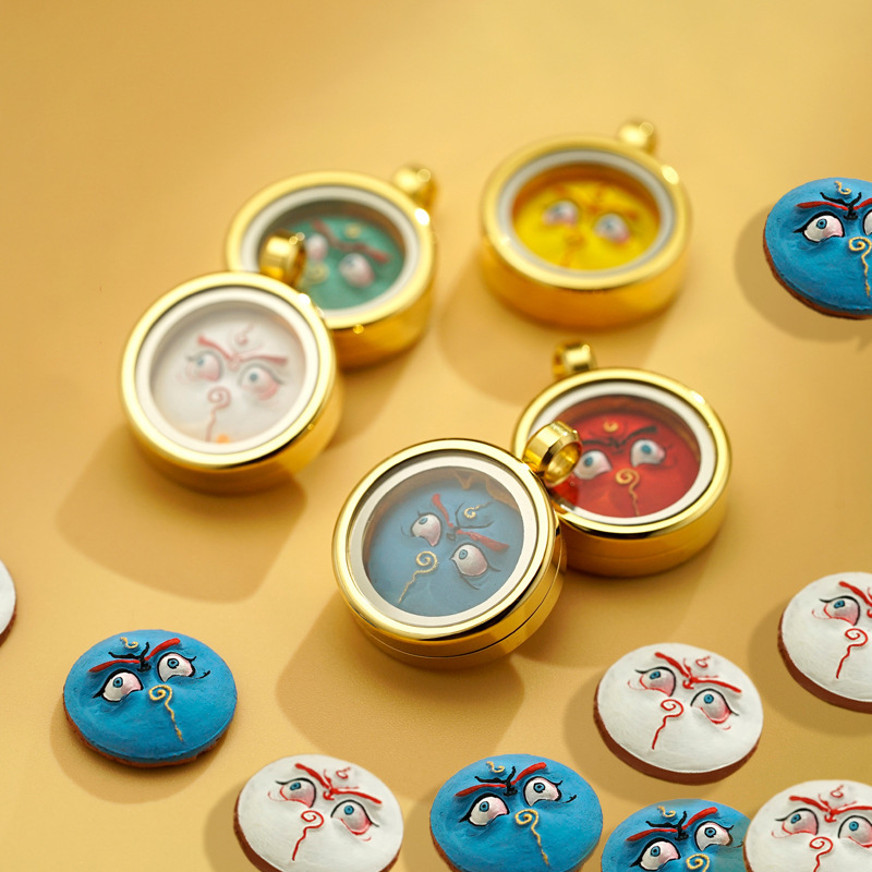 五路财神眼唐卡画盒手工制作手绘上色可泥塑钛钢吊坠配件饰