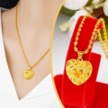 纯黄铜仿999真金项链男女款金黄色镀24k爱心吊坠不掉色水波链批发