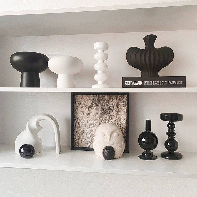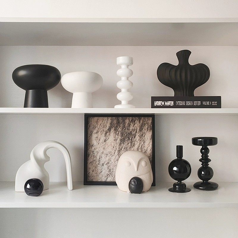 花植间 ins黑白简约风抽象摆件家居软装高级感陶瓷玻璃艺术感摆设