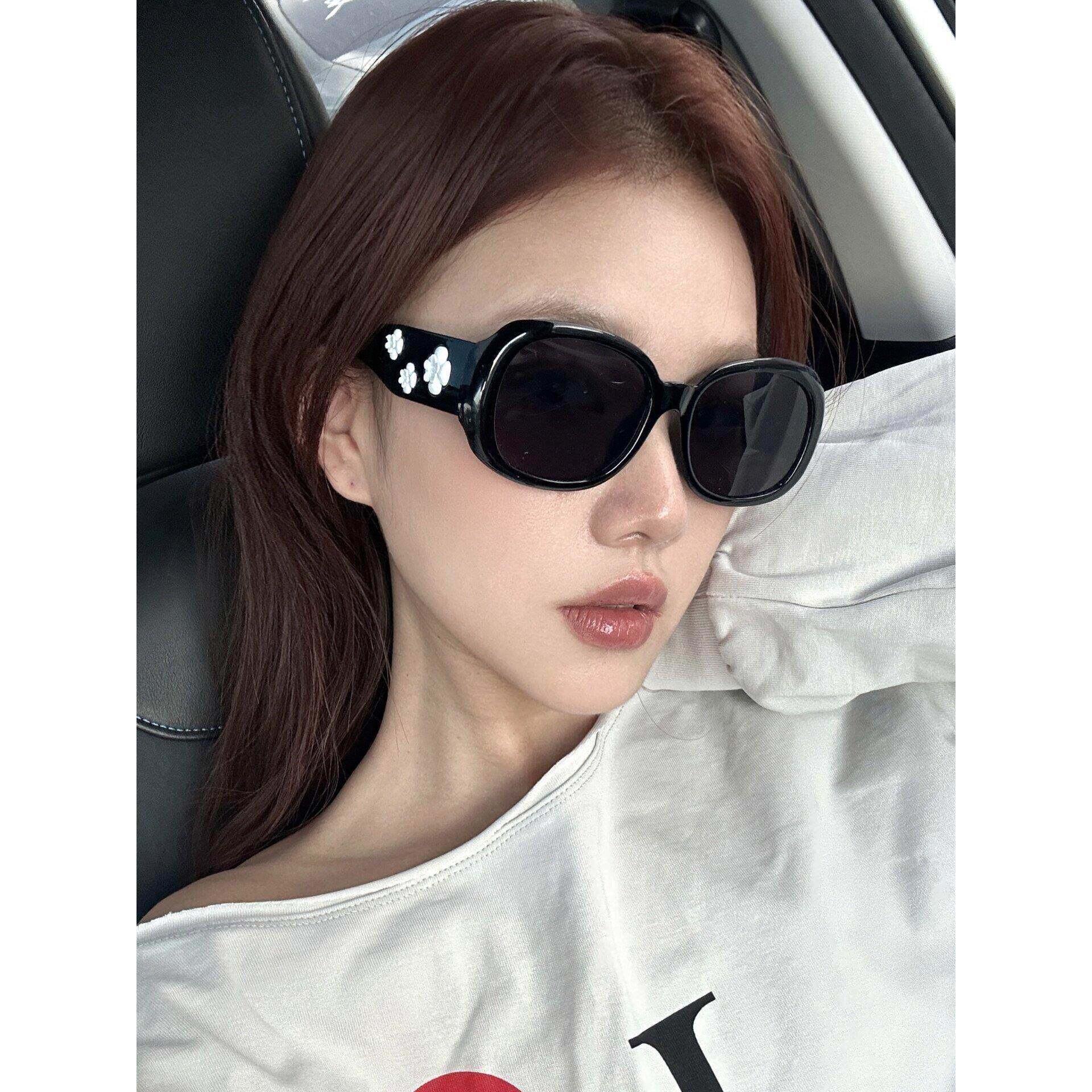 夏季白色山茶花墨镜女大框椭圆形显瘦高级千金感度假遮阳太阳眼镜