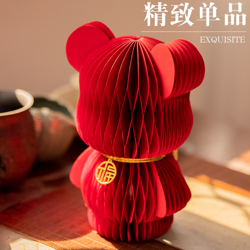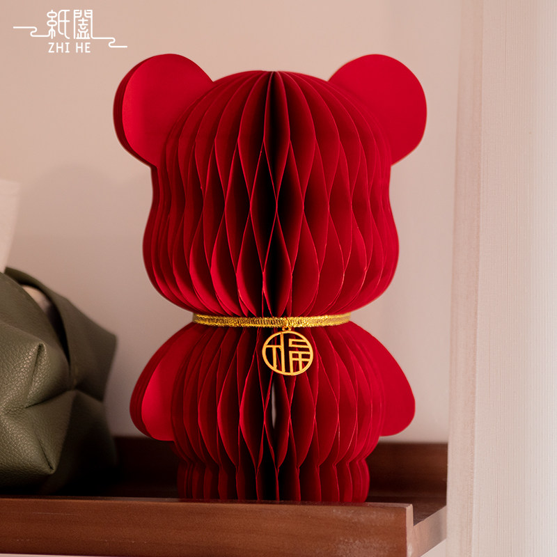 纸阖抱抱熊国潮红色摆件电视柜乔迁之喜装饰玄关布置福字入宅礼物