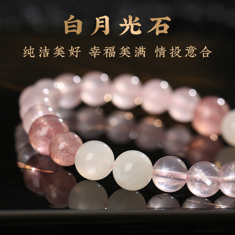 吉饰坊草莓晶粉水晶手链招米手链旺姻缘手串女款水晶粉色手串手链