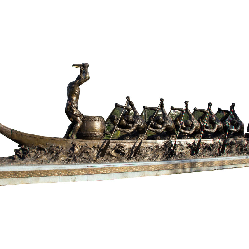 大型划桨竞技划龙舟雕塑定制不锈钢民族团结主题水上运动景观雕像