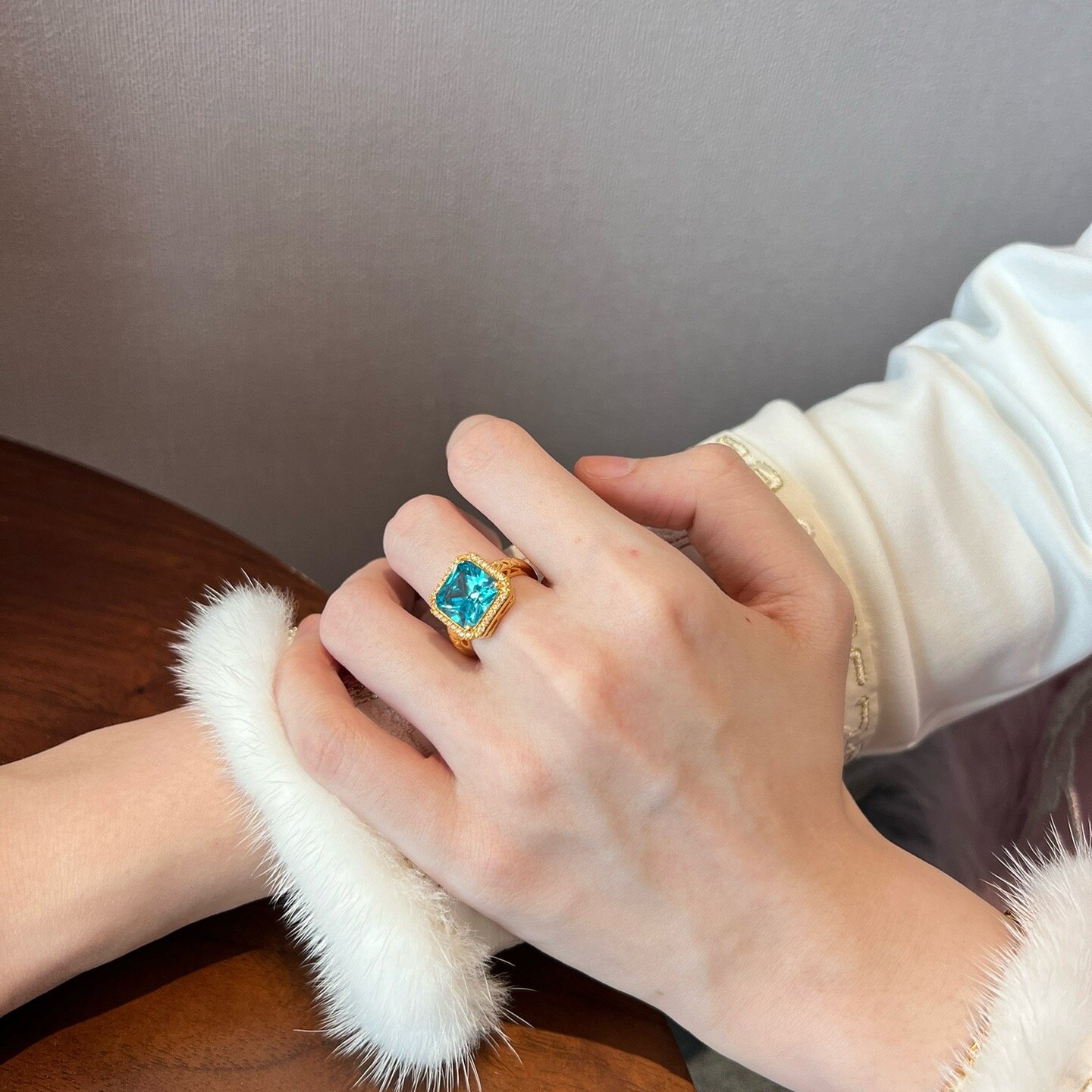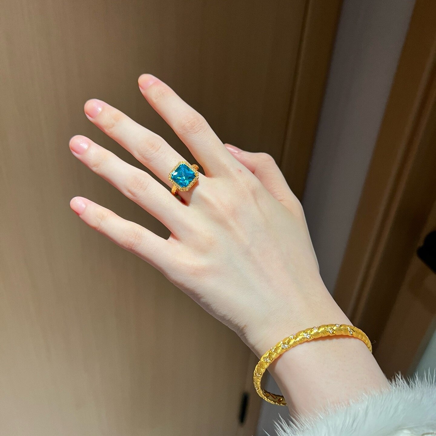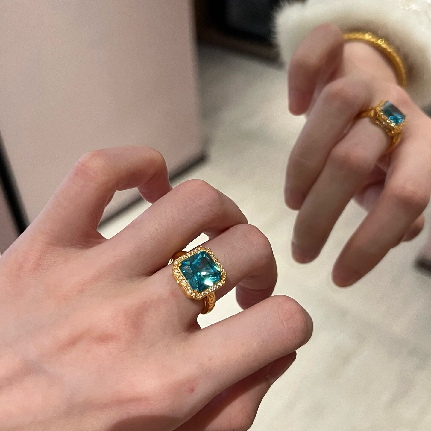 黄金蓝色大方糖戒指 足金999莫桑钻对戒结婚订婚送女友生日礼物男