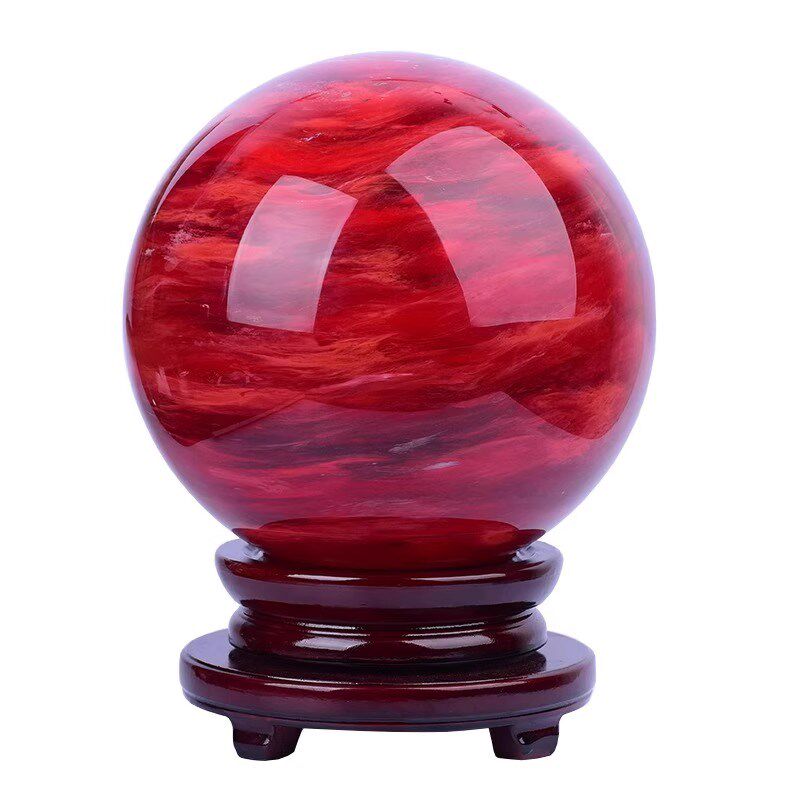 天然红色水晶球真原石大红吉祥珠A圆形鸿运球装饰摆件办公室火属