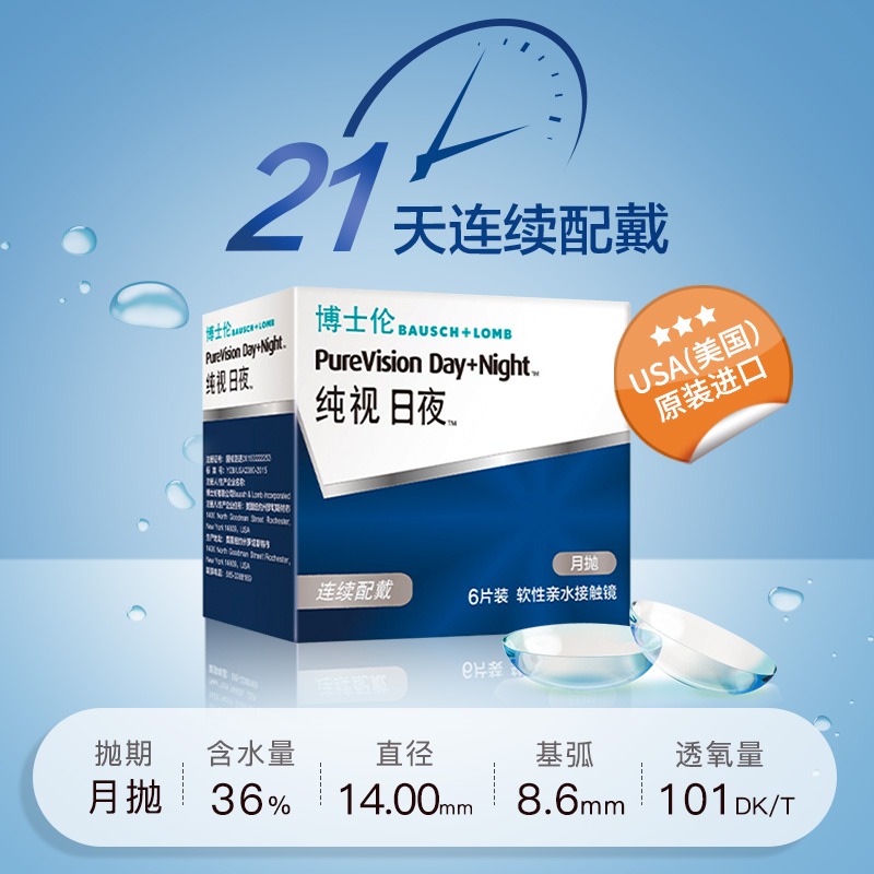 博士伦隐形近视眼镜纯视日夜月抛6片硅水凝胶隐形官网正品非日抛
