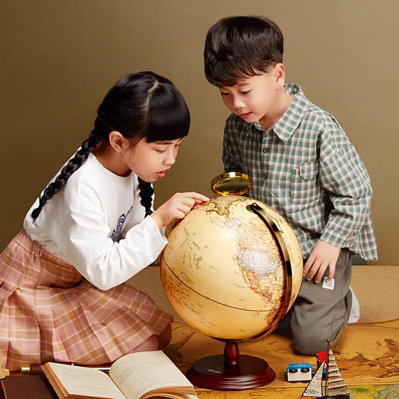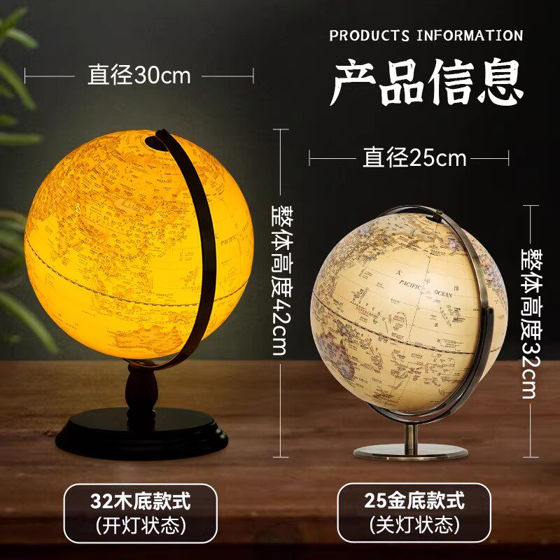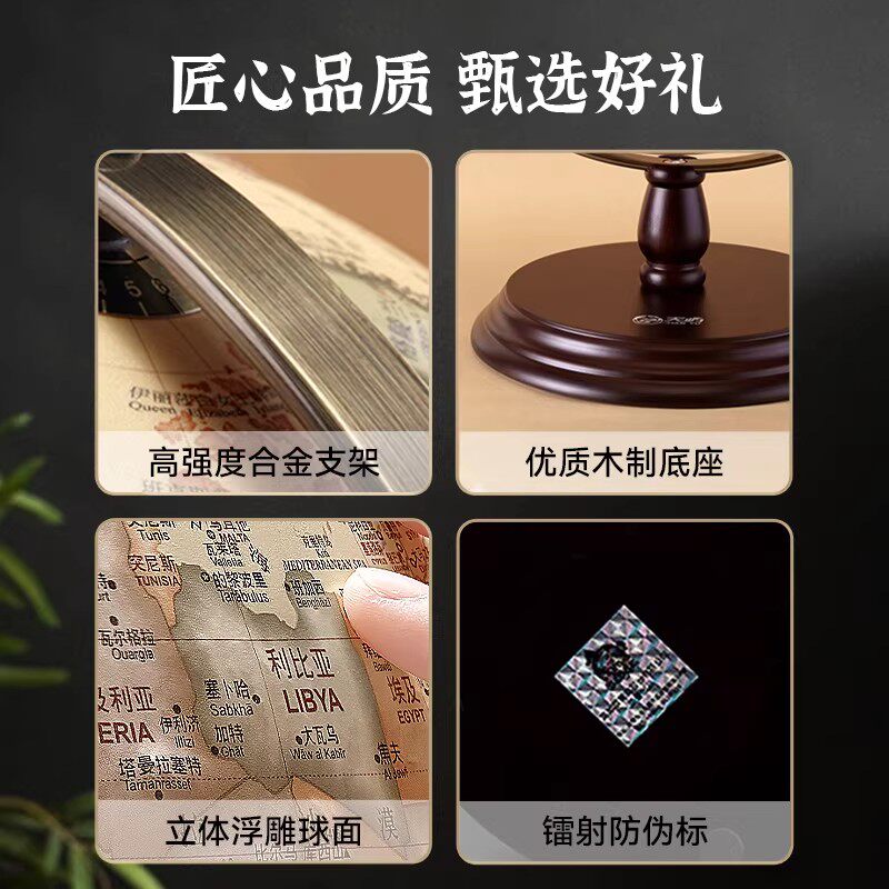 天屿高档复古黄色地球仪轻奢摆件特大号3d立体悬浮凹凸台湾浮雕