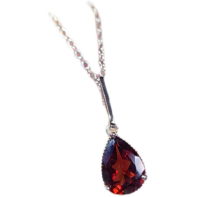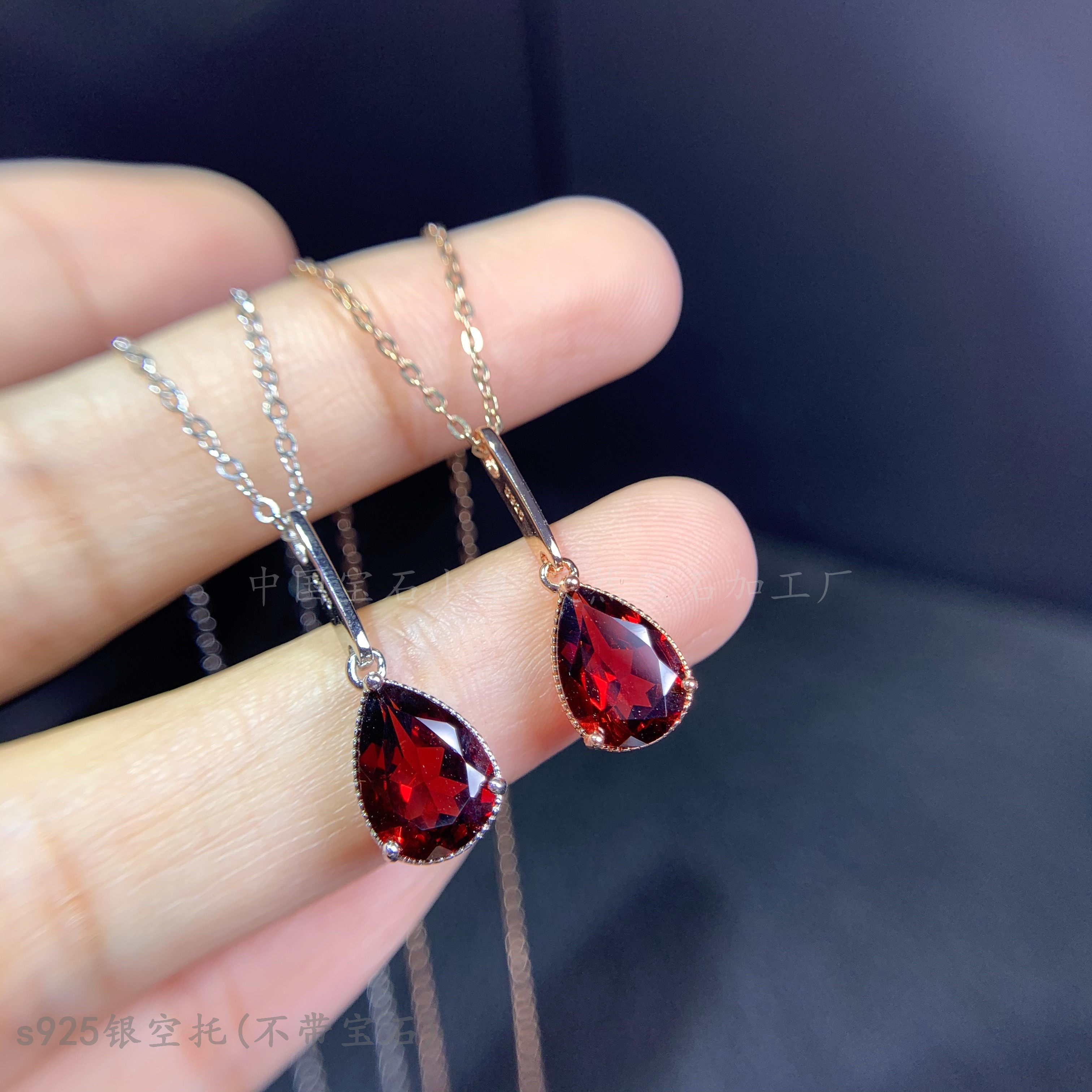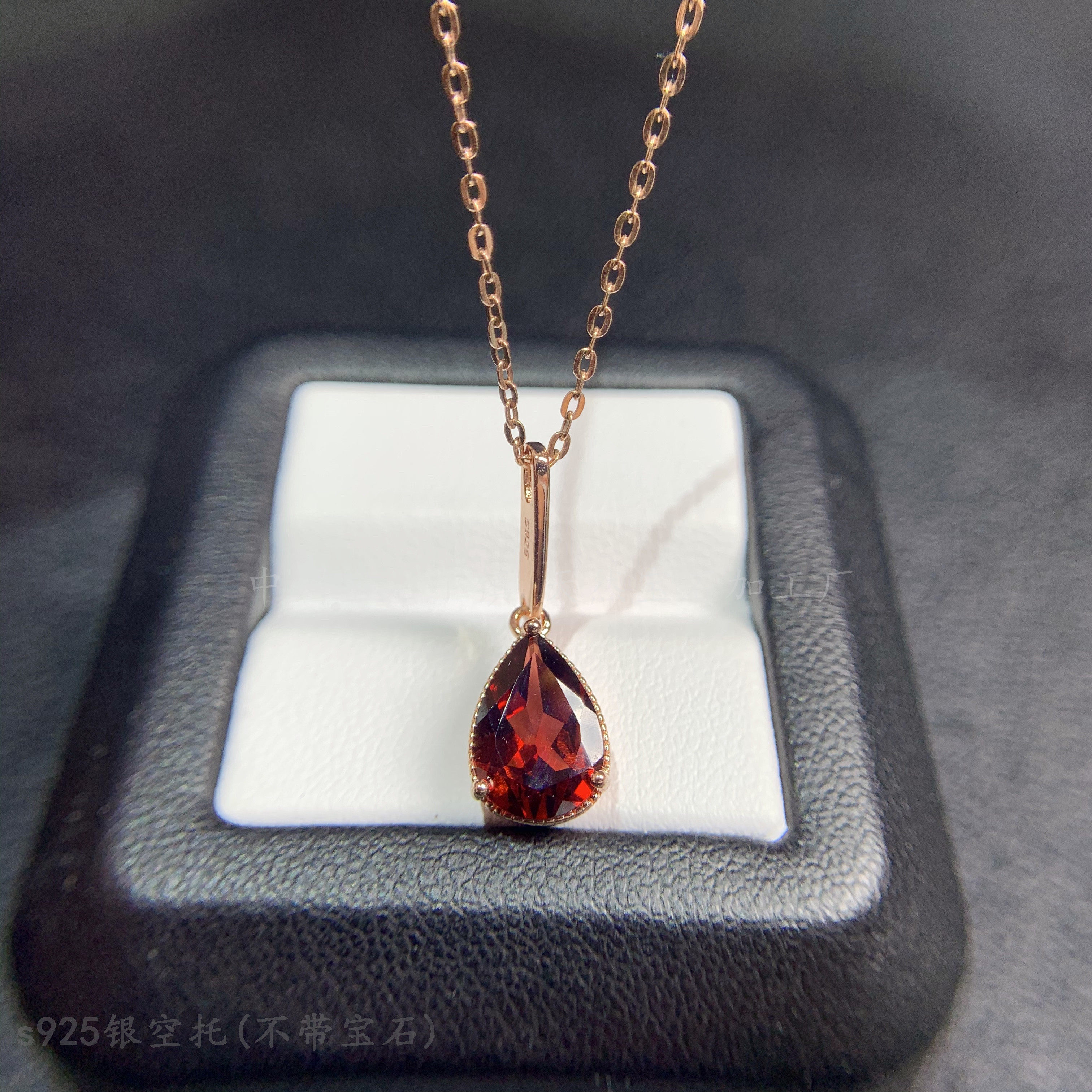 s925纯银吊坠空托 水滴形7*10mm镶钳天然红色石榴石 简约气质小众