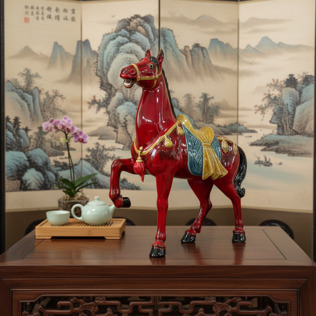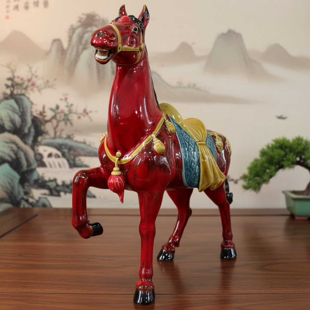马年新款 鸿运满堂办公室工艺陶瓷送礼小摆件电视柜新中式生肖马