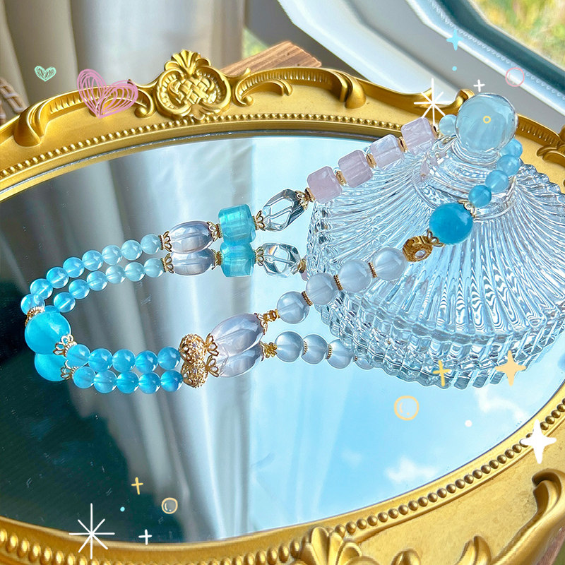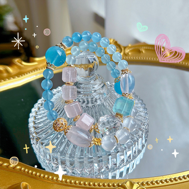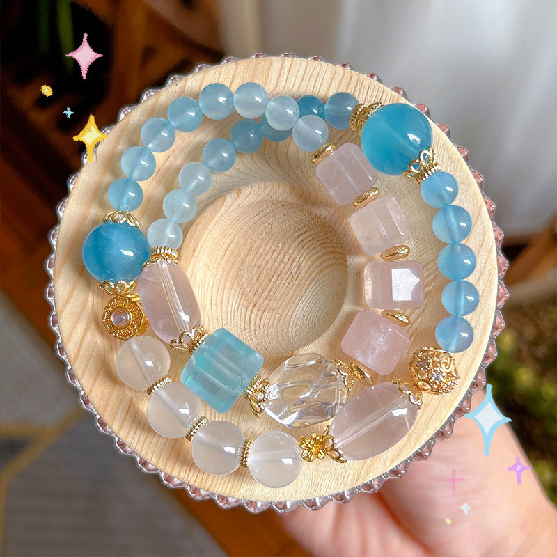 承包你的幸运 | 自信迷人 海蓝宝双层手链白水晶粉晶不规则手串