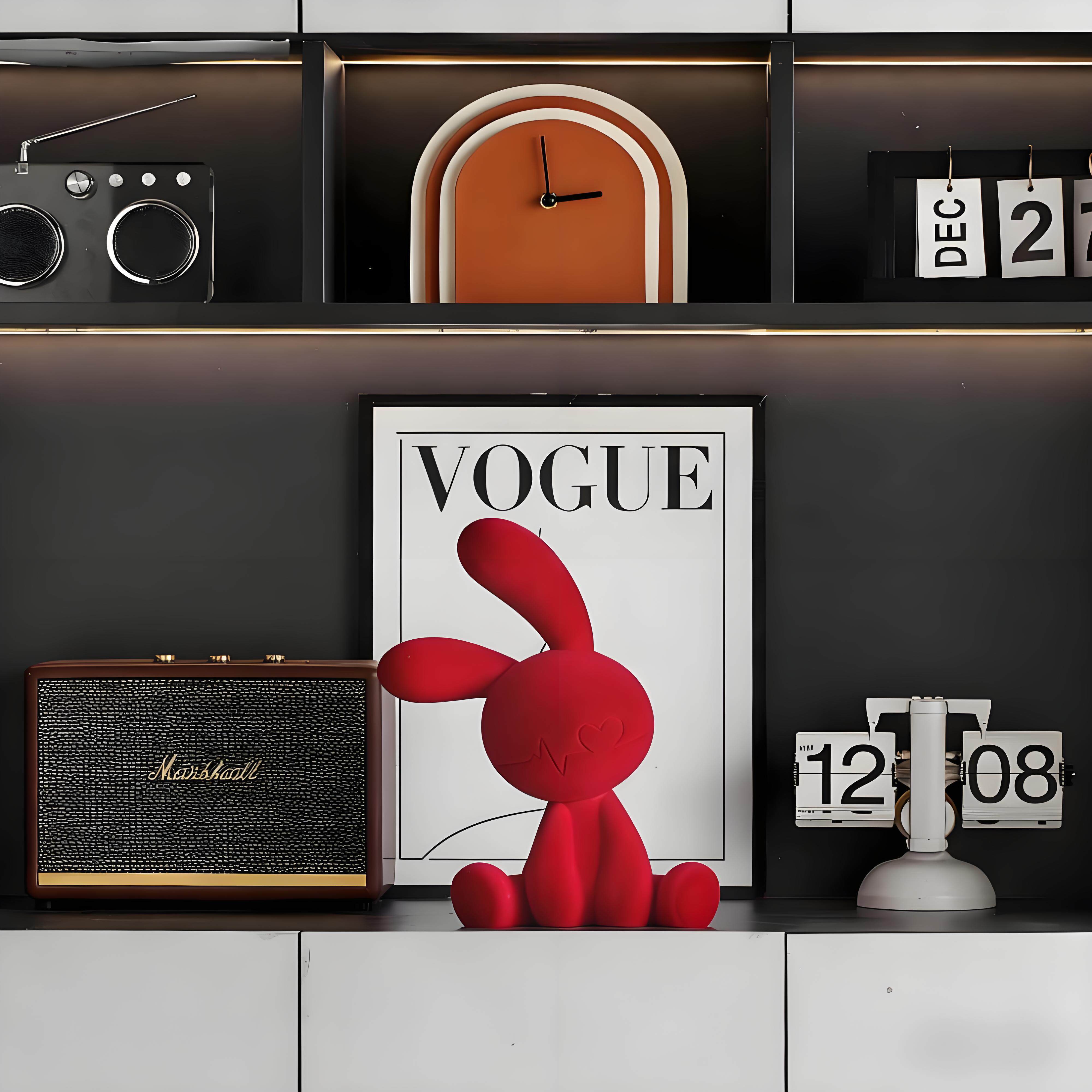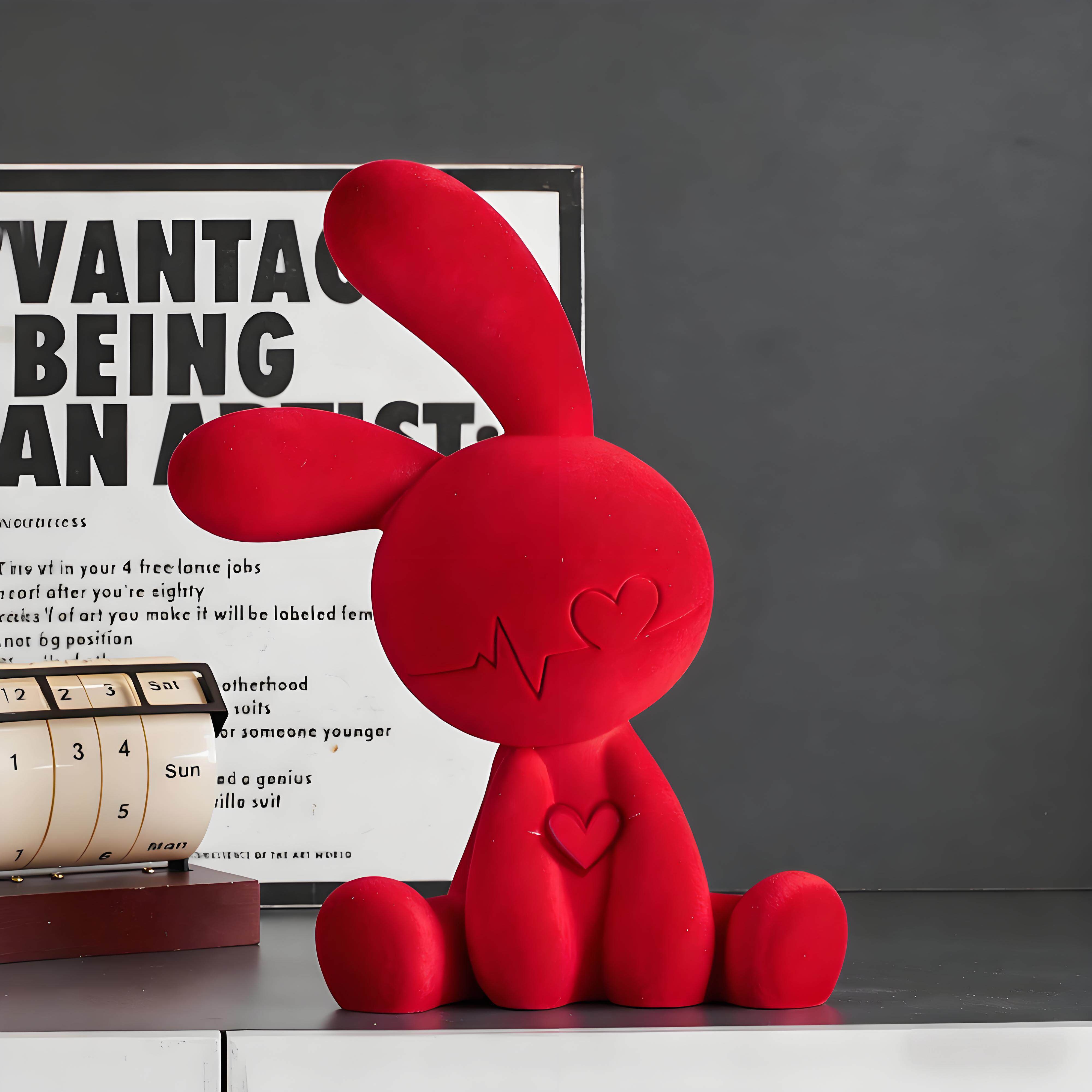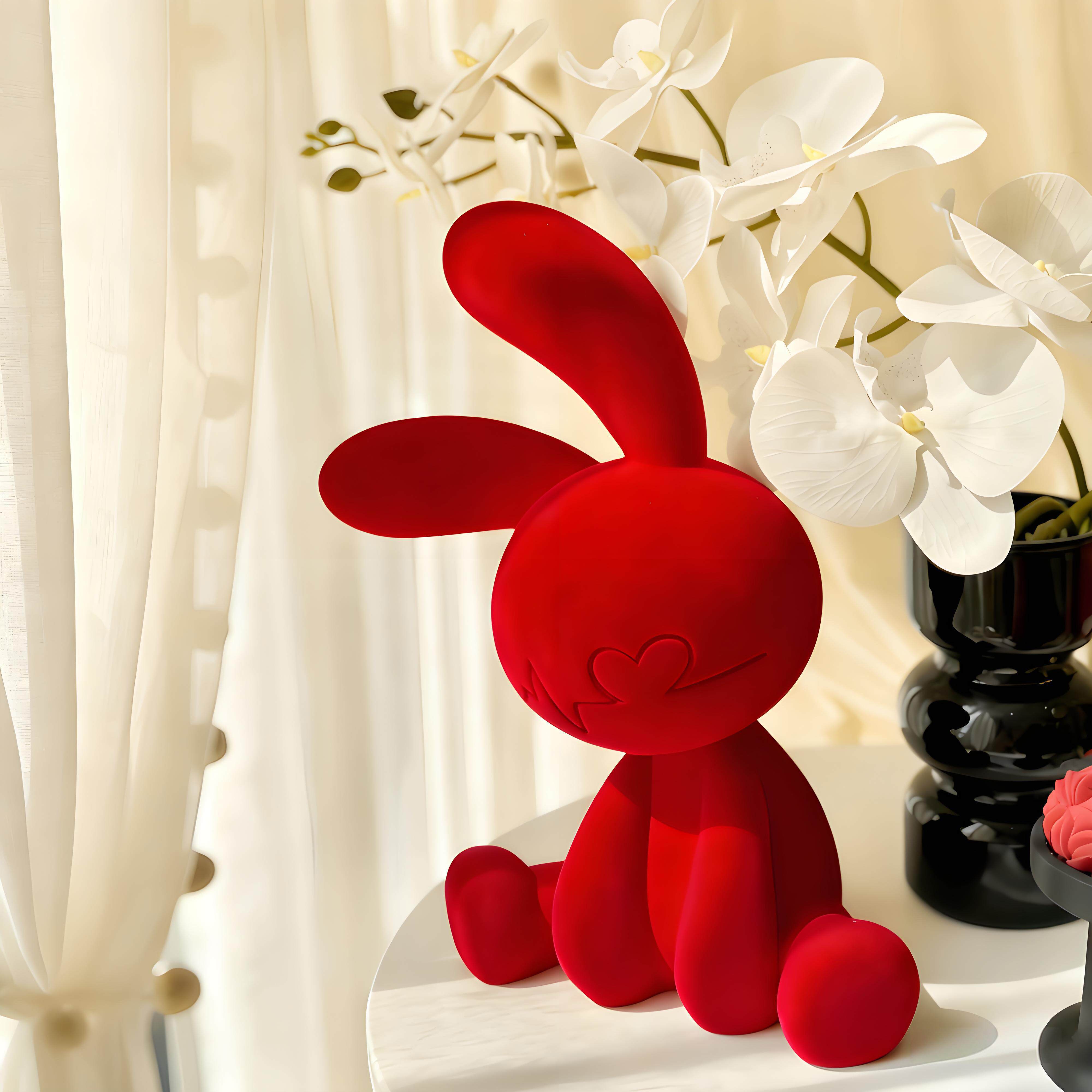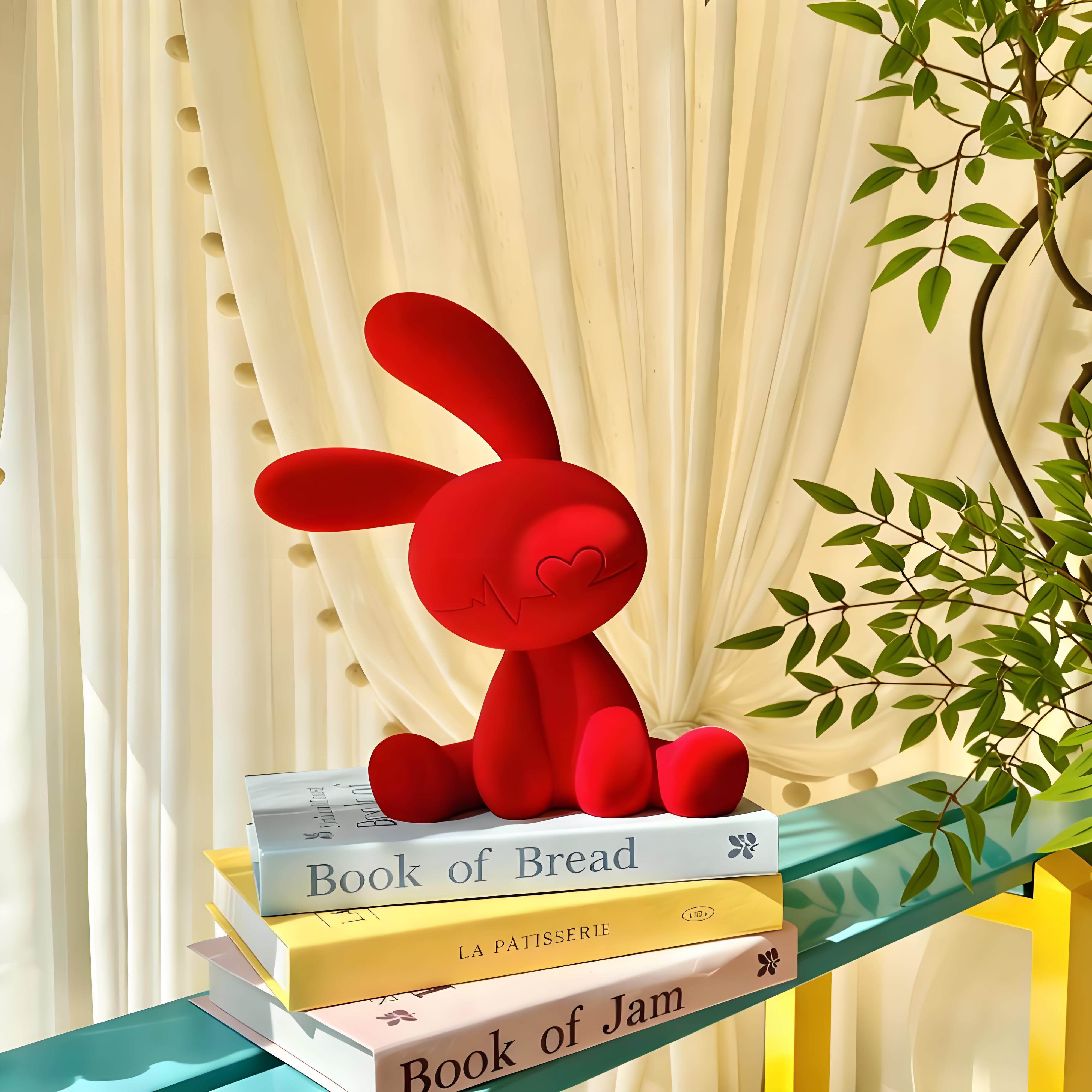 德国坐姿兔子红色摆件玄关酒柜客厅电视柜小众高级感家居装饰摆件