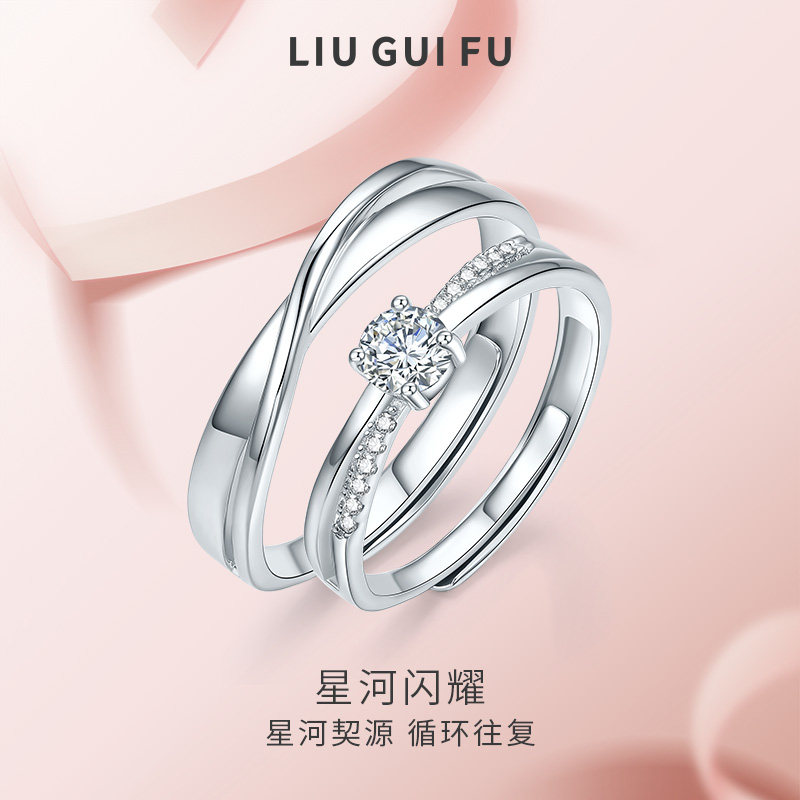 六桂福S925纯银星河闪耀男女对戒情约系列情侣戒婚戒活口送对象