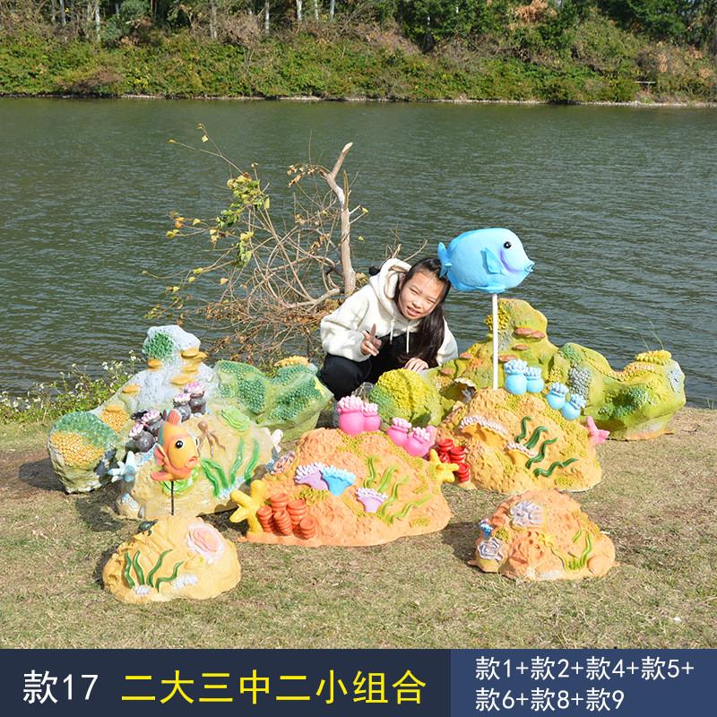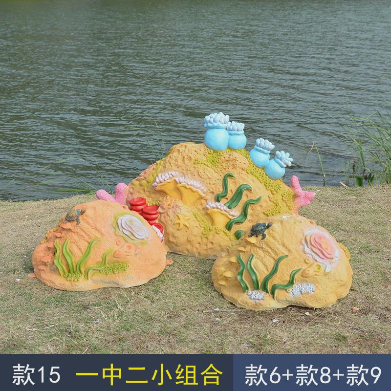 仿真珊瑚礁石雕塑海洋主题造景装饰玻璃钢摆件礁石海草鹅卵石模型