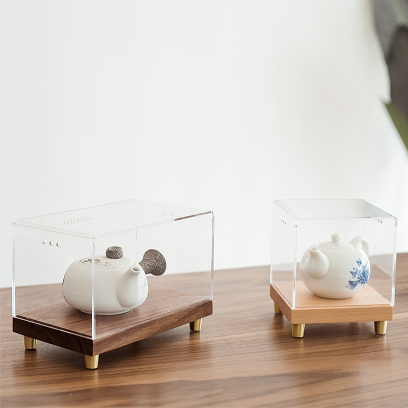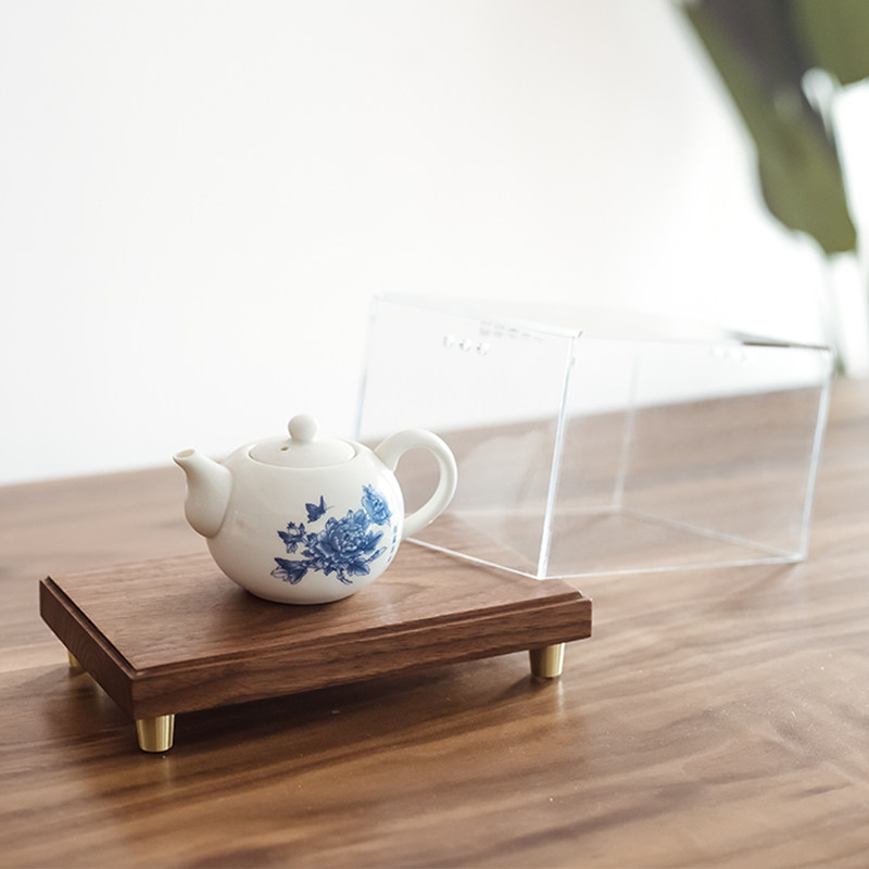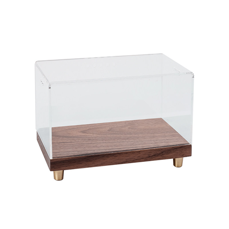 亚克力防尘罩黑胡桃木底座摆件托盘底托带铜脚工艺品观赏实木托架