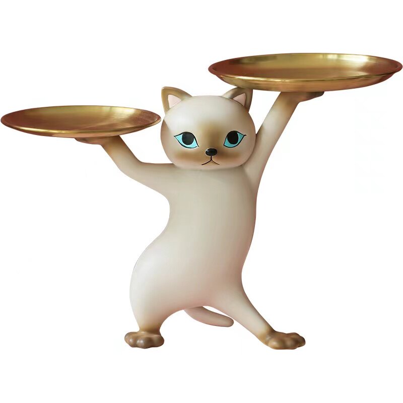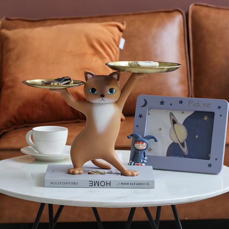 创意卡通沙雕妖娆猫摆件客厅玄关钥匙收纳桌面托盘乔迁新居礼物