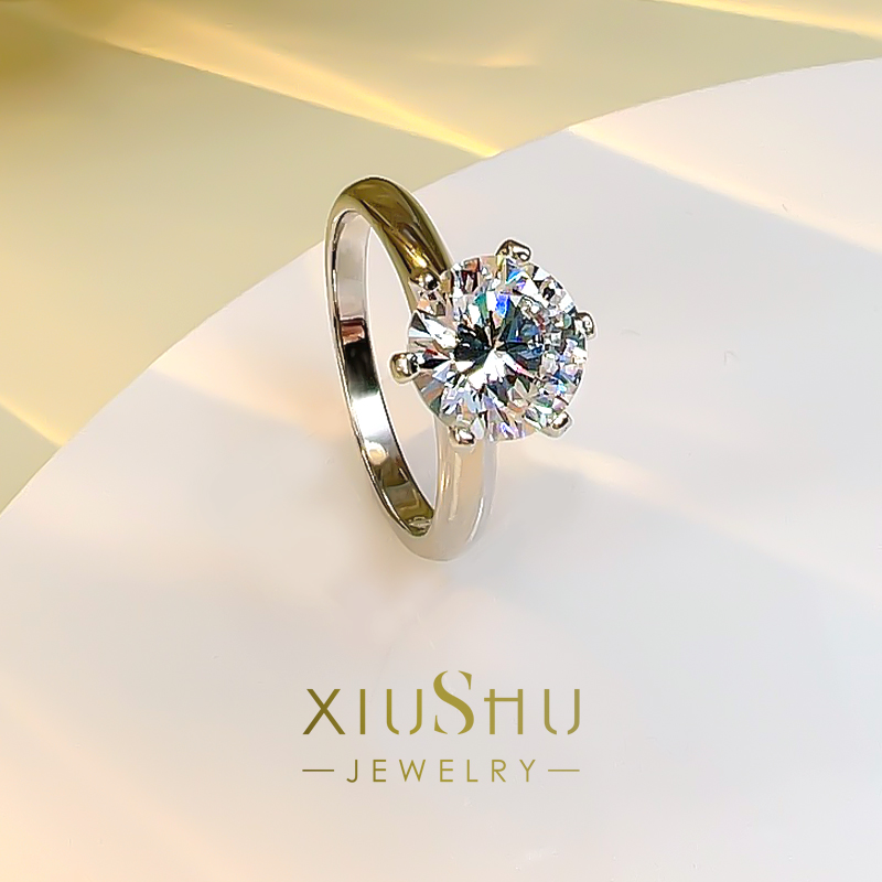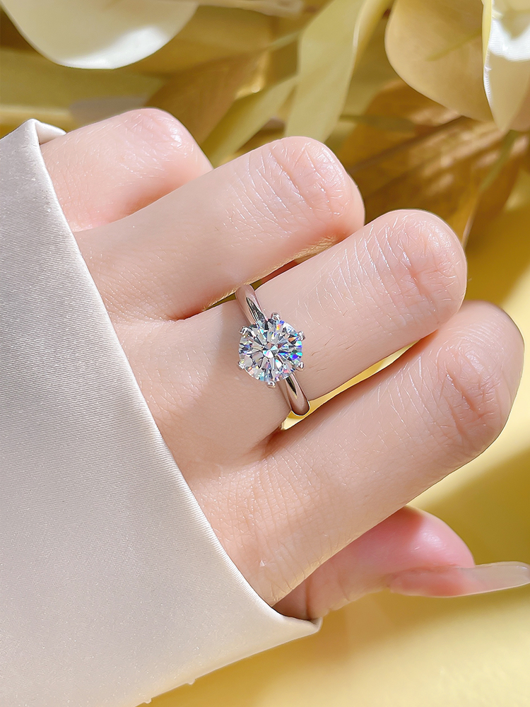 时尚经典925纯银百搭圆钻戒指镶嵌高碳钻求婚礼物简约六爪高级感