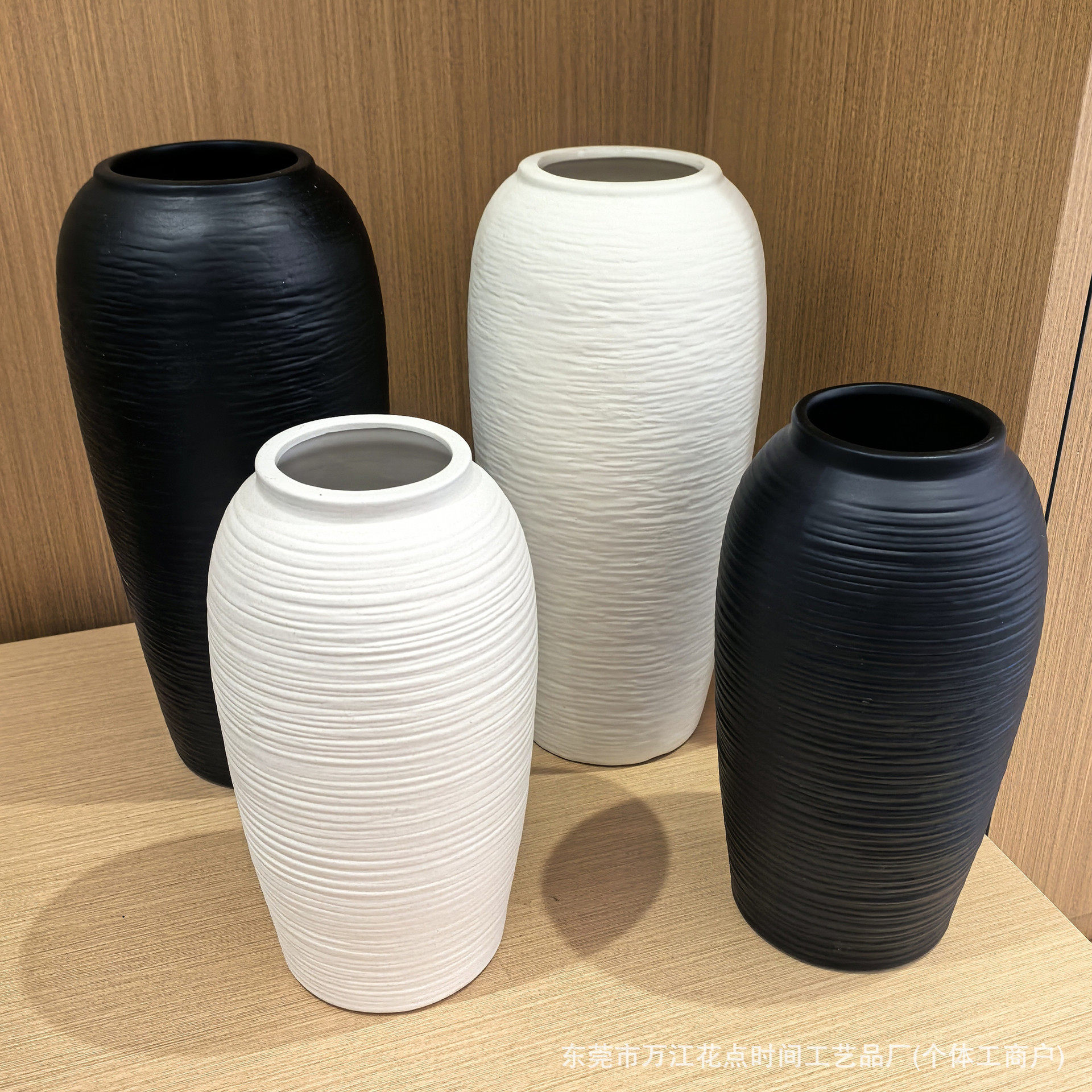 白色陶瓷花瓶复古拉丝摆件客厅插鲜花家居民宿样板间粗陶罐装饰品