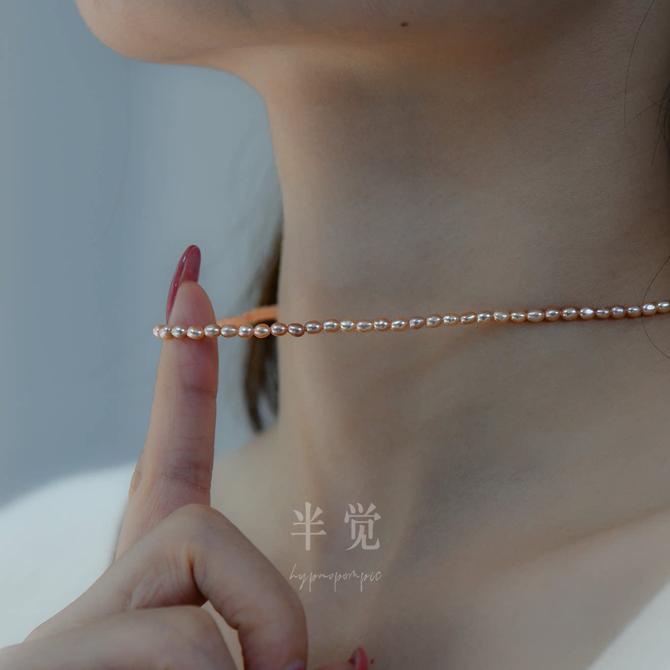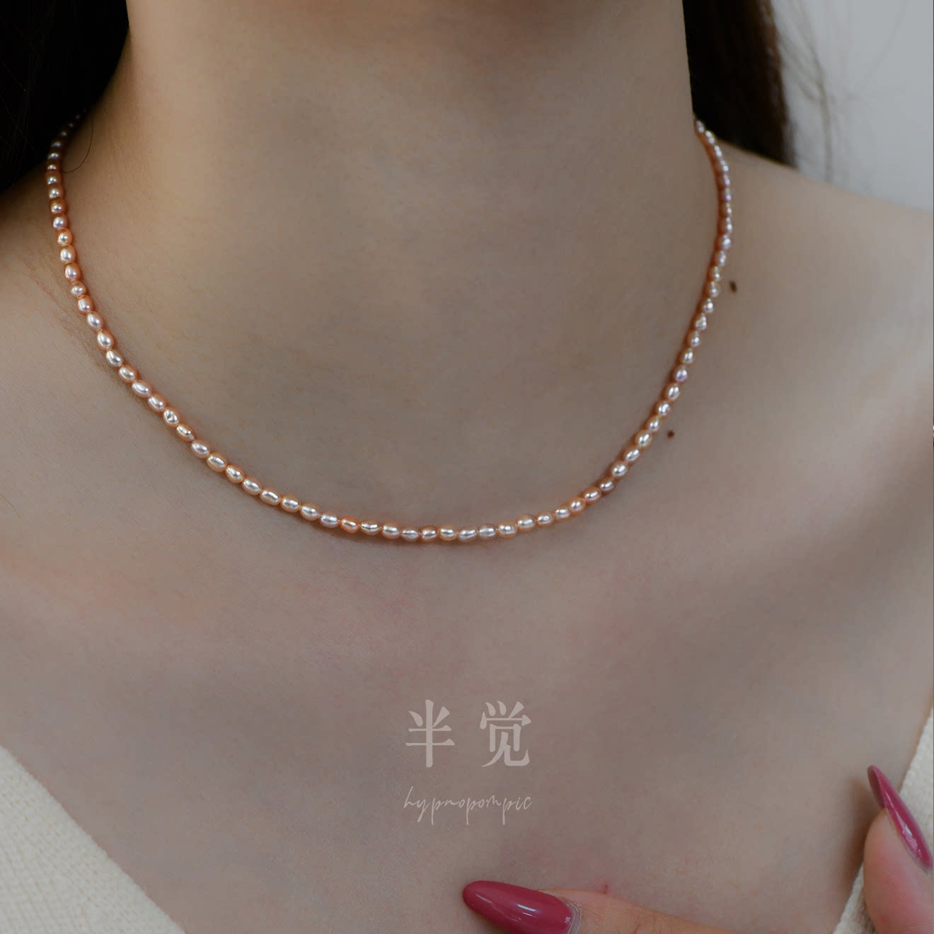 半觉迷你玫瑰金无核keshi极光怪色绝美百搭纯银双扣淡水珍珠项链