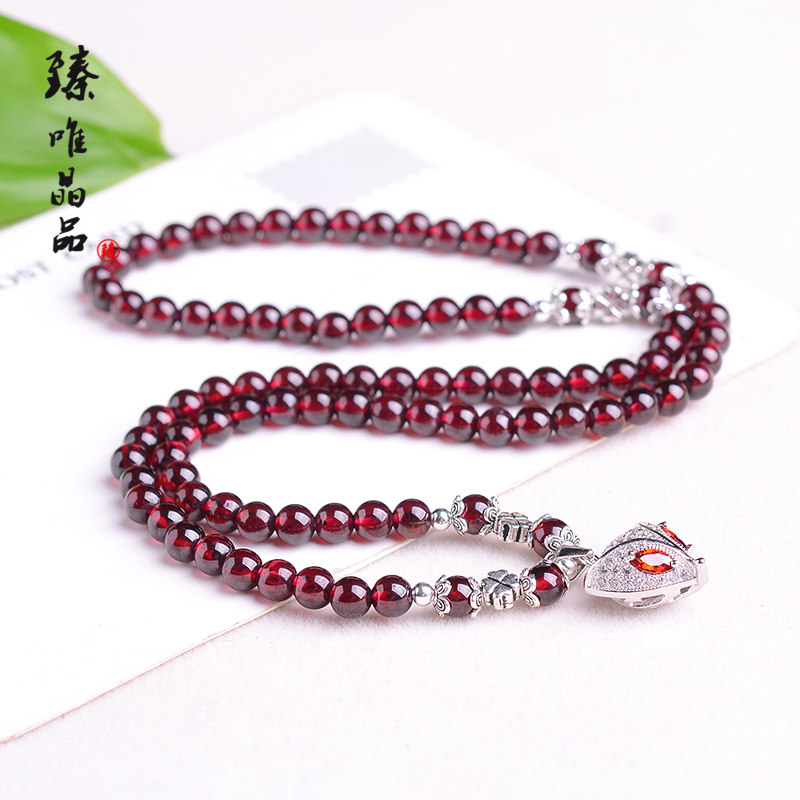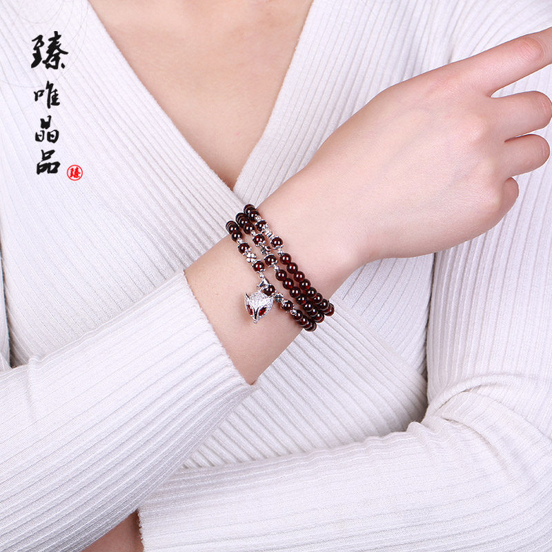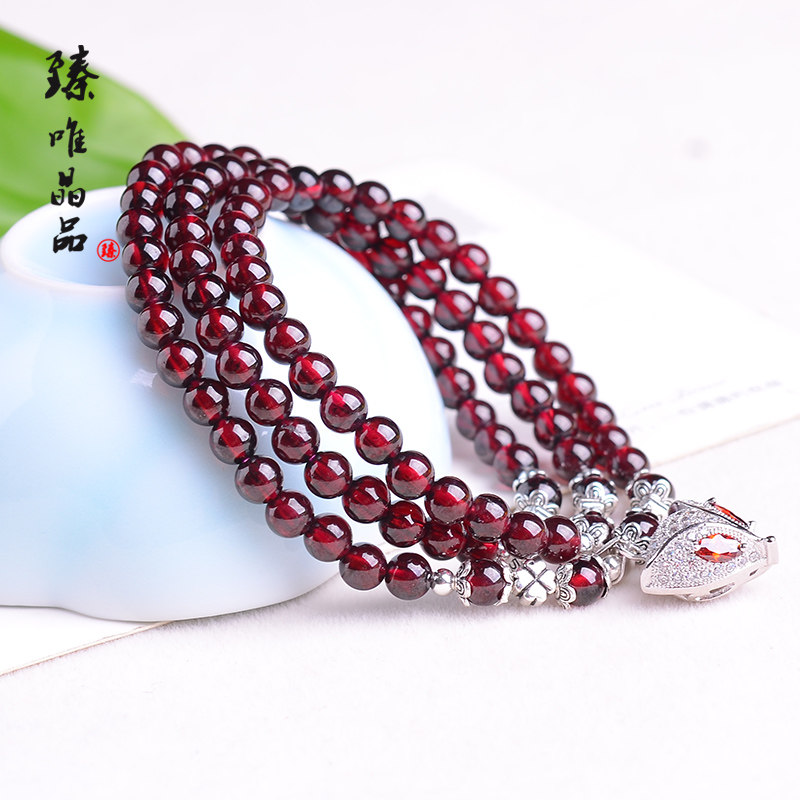 臻唯高等级酒红 清透天然石榴石手链女多圈多层手串 狐狸项链饰品